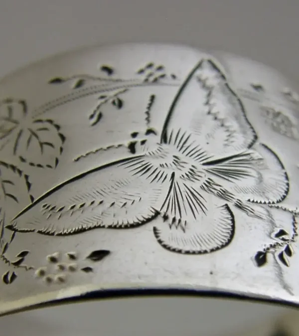 ENGLISH BUTTERFLY & BLACKBERRIES STERLING SILVER NAPKIN RING VICTORIAN 1887