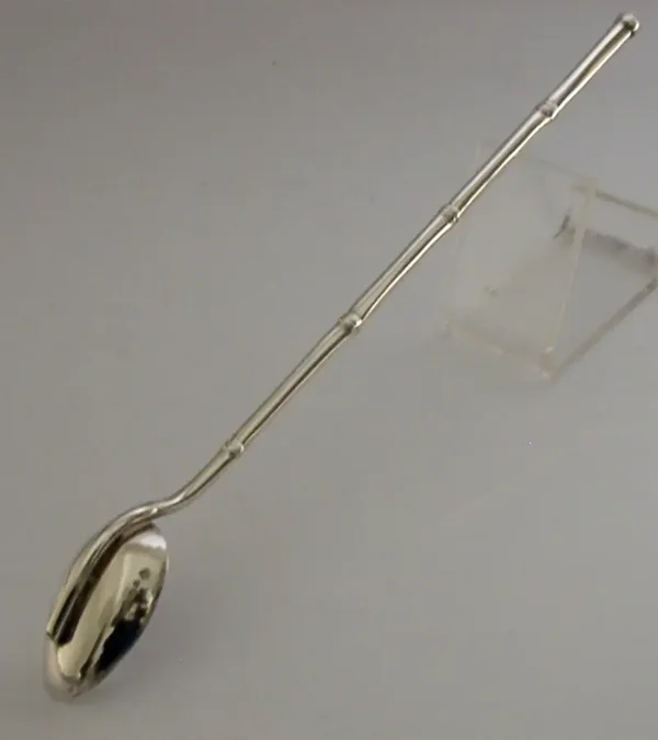 A very nicely designed sterling silver cocktail straw / mixer. It is hallmarked for London 1971 with the maker being Aspreys. It has been superbly designed and is in super condition being free from splits and repairs. It measures approx. 7.75 inches (19.5cm) long and weighs 16 grams. A very good quality piece.