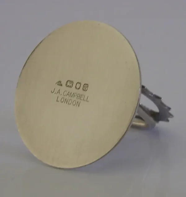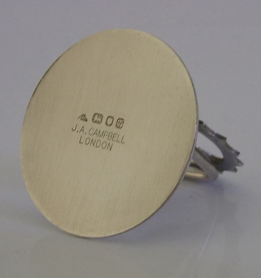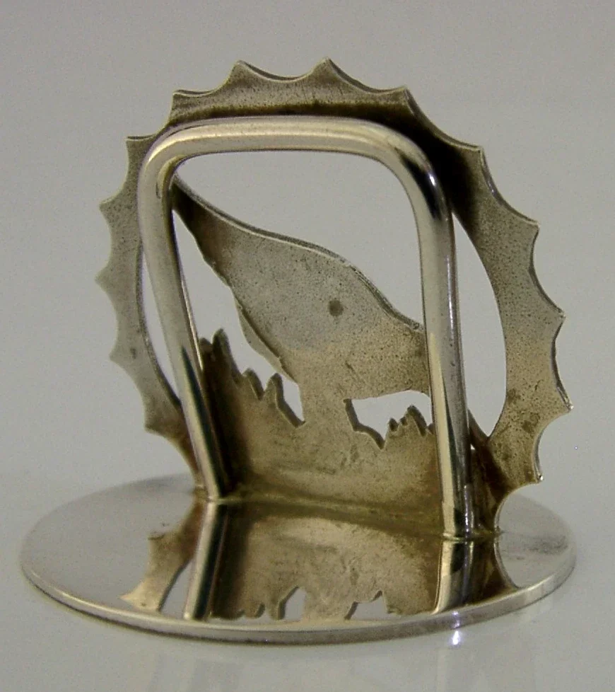 A quality English antique solid sterling silver menu holder. It is hallmarked for London 1993 with the maker being J A Campbell. It has been beautifully designed being pierced and engraved with a woodcock. It is in super condition being free from dings splits and repairs. It measures approx. 1.25 inches (3.2cm) tall by 1.25 inches (3.2cm) across the base and weighs 13 grams. A very nice quality piece.
