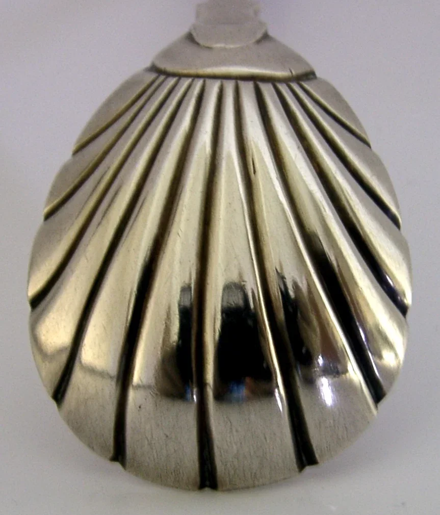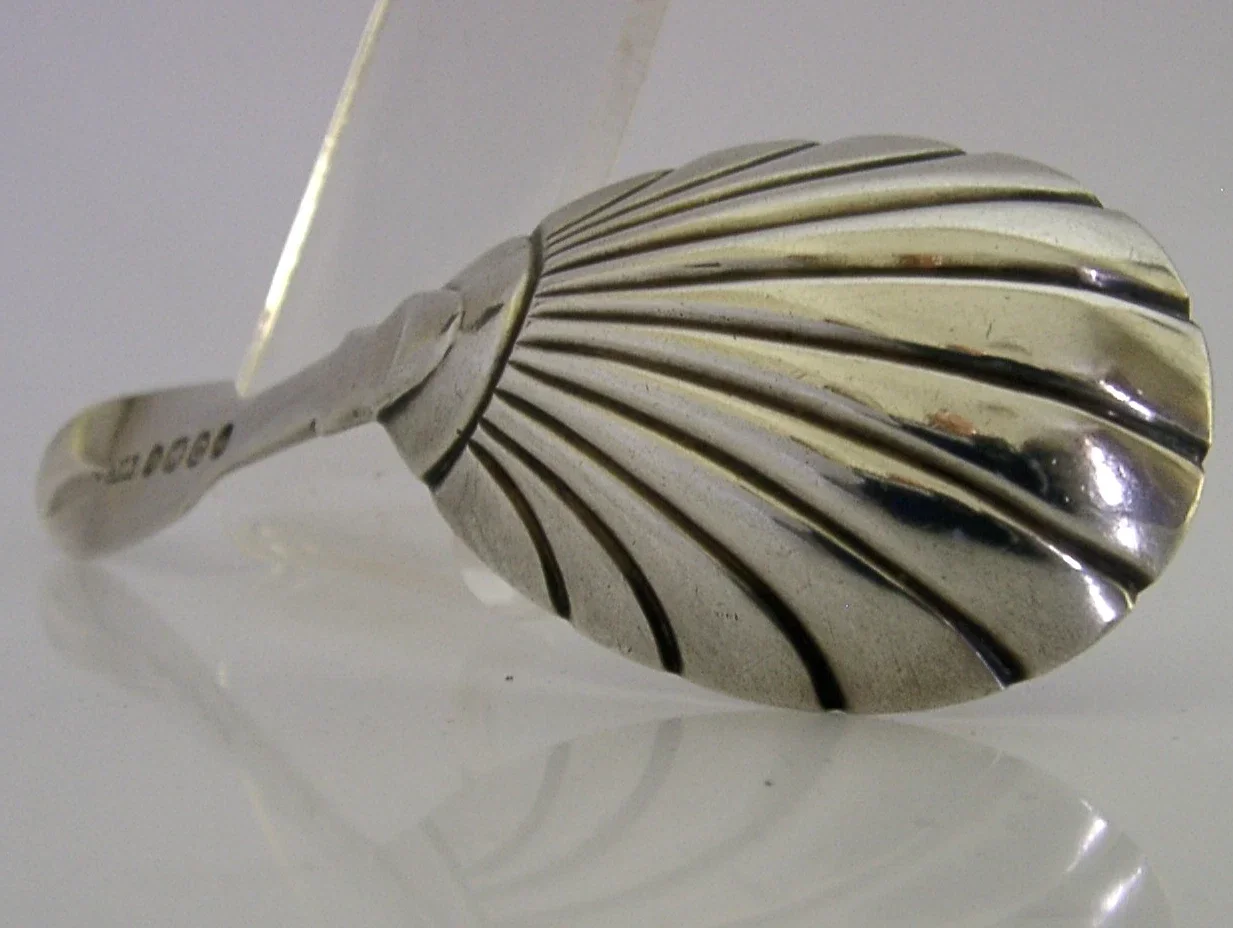 ENGLISH GEORGIAN STERLING SILVER SCALLOPED BOWL CADDY SPOON 1829 ANTIQUE
