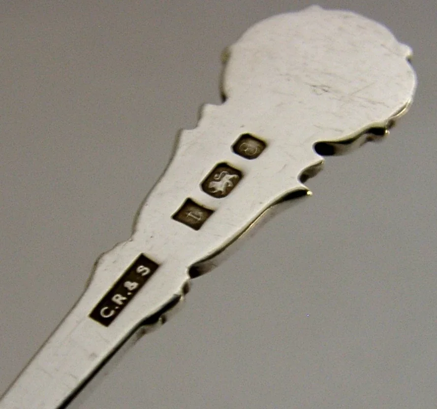 An interesting solid sterling silver and enamelled spoon. It is hallmarked for Birmingham 1979 with the maker being C Robathan & Son. It has been well designed having its terminal being enamelled with a Tudor Rose of Lancashire. It is in super condition being free from dings splits and repairs. It measures approx. 4.75 inches (11.8cm) long by 1 inch (2.6cm) wide and weighs 10 grams. A very interesting example.