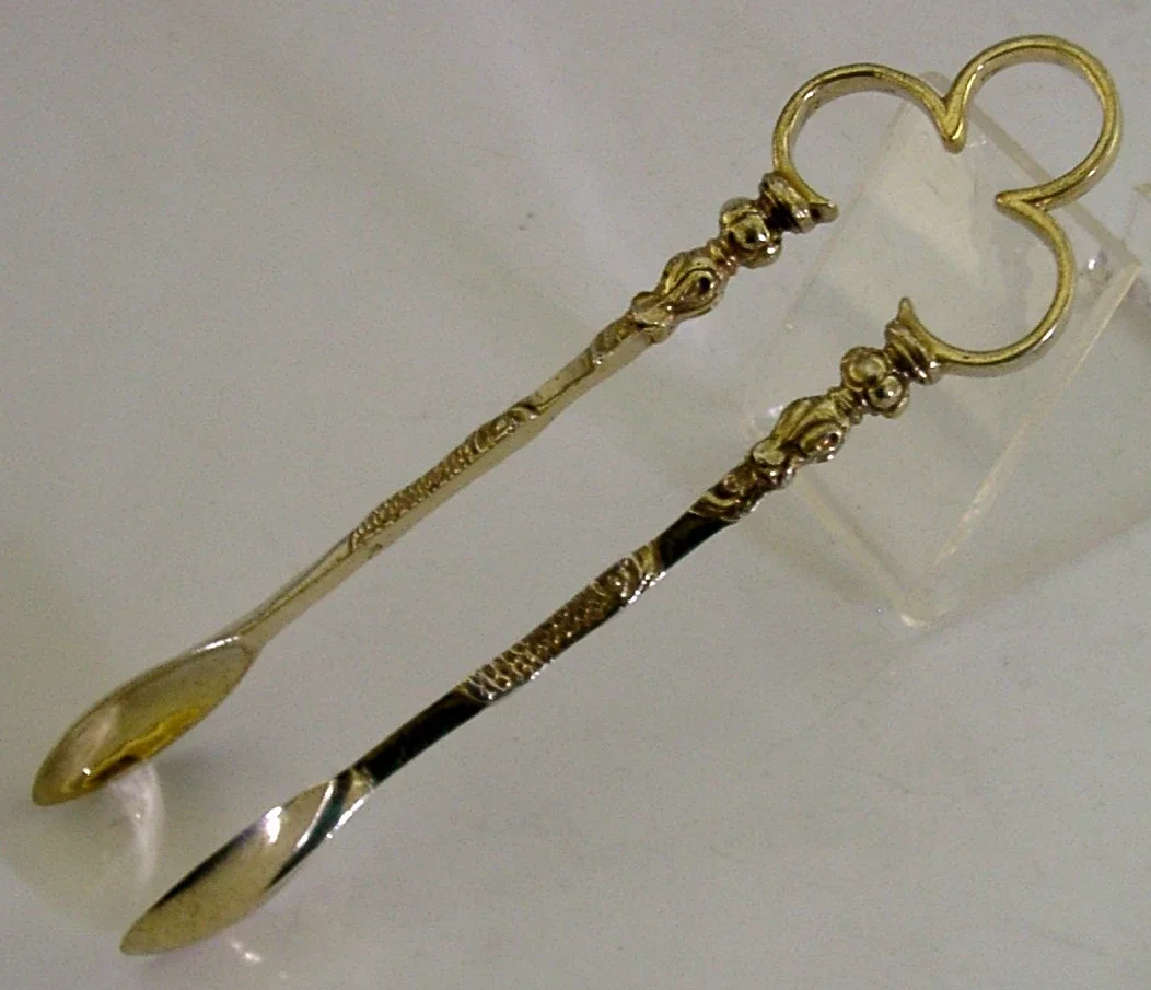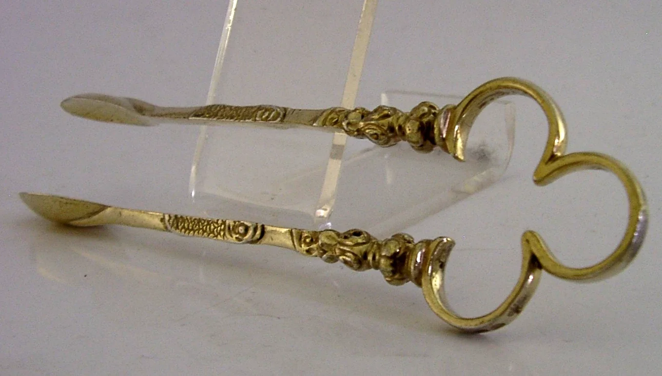 RARE ENGLISH VICTORIAN CAST STERLING SILVER GILT SUGAR TONGS 1889 ANTIQUE 22g