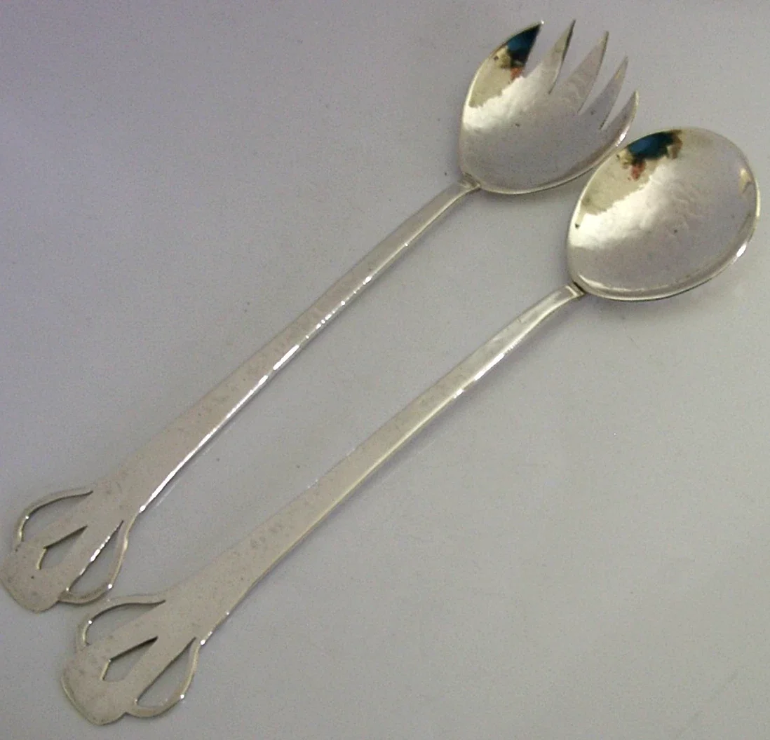 RARE ARTS & CRAFTS C G LANGDON STERLING SILVER SALAD SERVERS 1936 ANTIQUE 114g