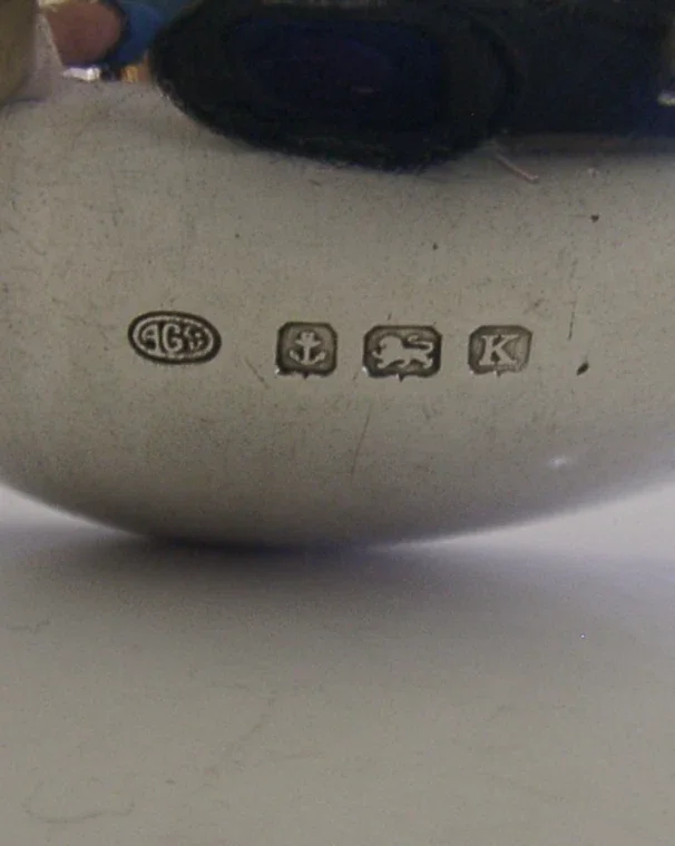 A nice quality English antique solid sterling silver dog spoon. It is hallmarked for Birmingham 1934 with the maker being Alexander Clark & Co Ltd. It has been superbly designed with the terminal depicting a Airedale Terrier dog. It is in super condition being free from dings splits distortions and repairs. It measures approx. 4.75 inches (12.2cm) long by over 1 inch (2.8cm) wide and weighs 18 grams. A very nicely designed piece.