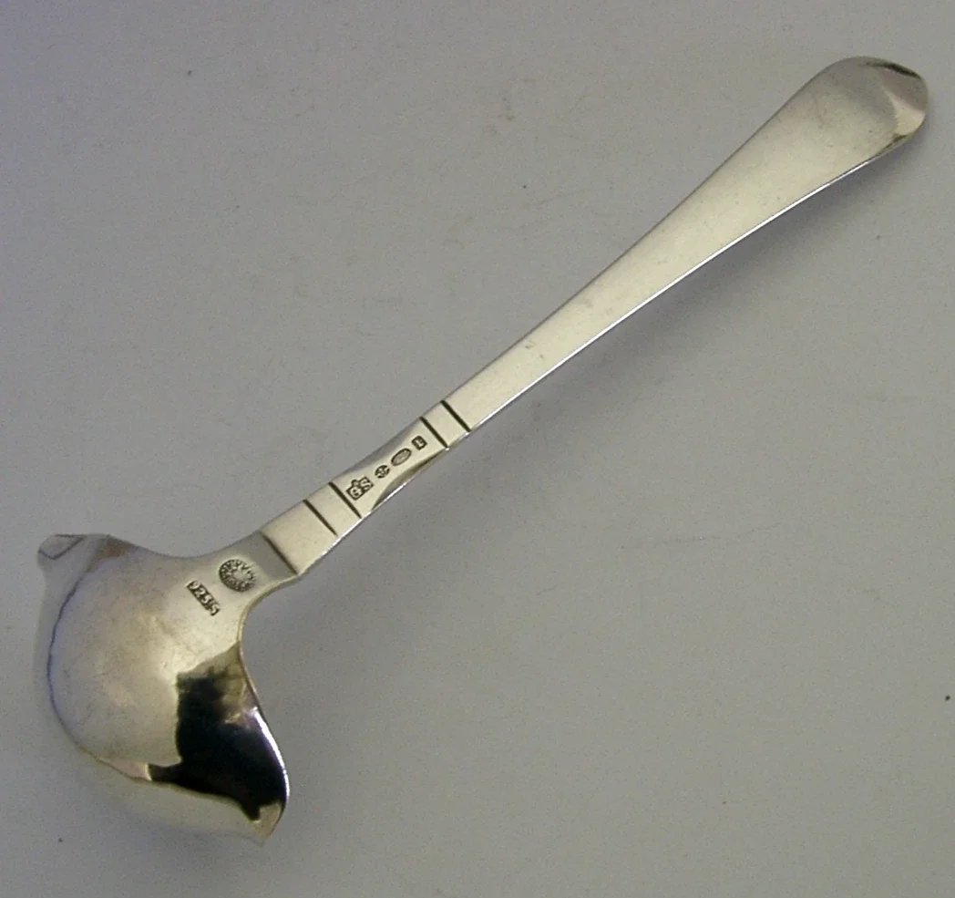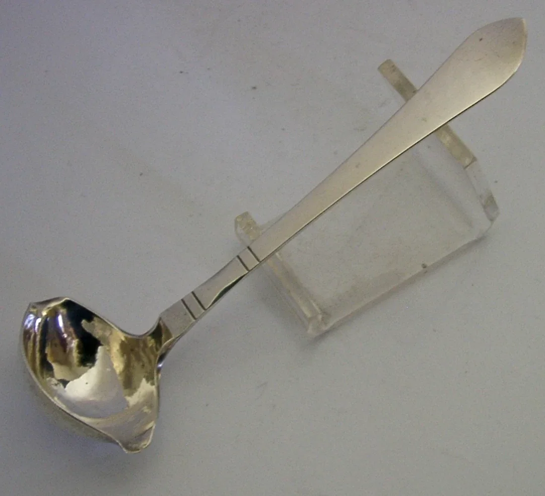 A superb Danish antique solid sterling silver sauce ladle. It has been hallmarked STERLING DENMARK along with the makers mark with Georg Jensen and import marks for London 1926. It has been superbly made to what is known as Pattern 41 and is in super condition being free from dings splits and repairs, tiny single bowl dimple see final photo. It measures approx. 5 inches (12.6cm) long by over 1.5 inches (4.2cm) wide and weighs 20 grams. A very nicely made piece.