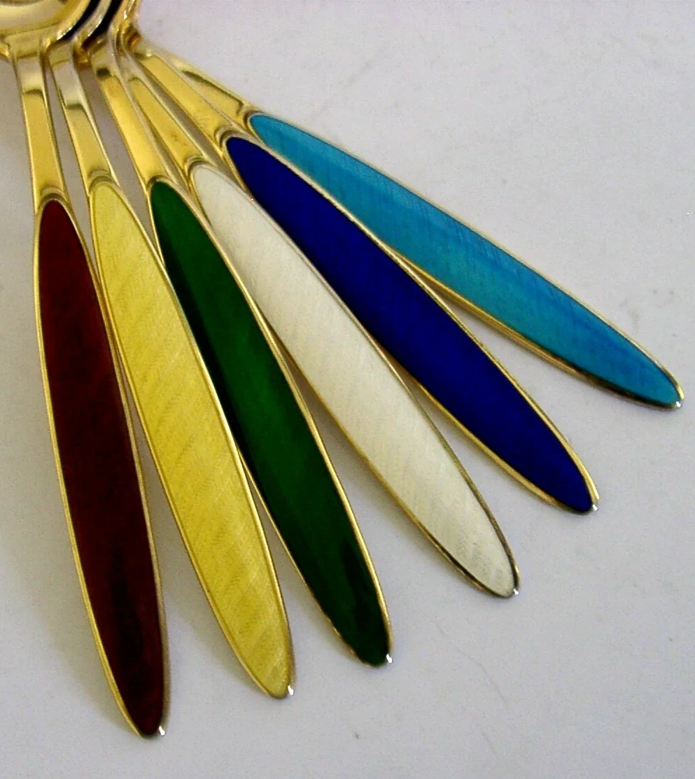 BEAUTIFUL STERLING SILVER ENAMEL SPOONS NORWEGIAN c1970