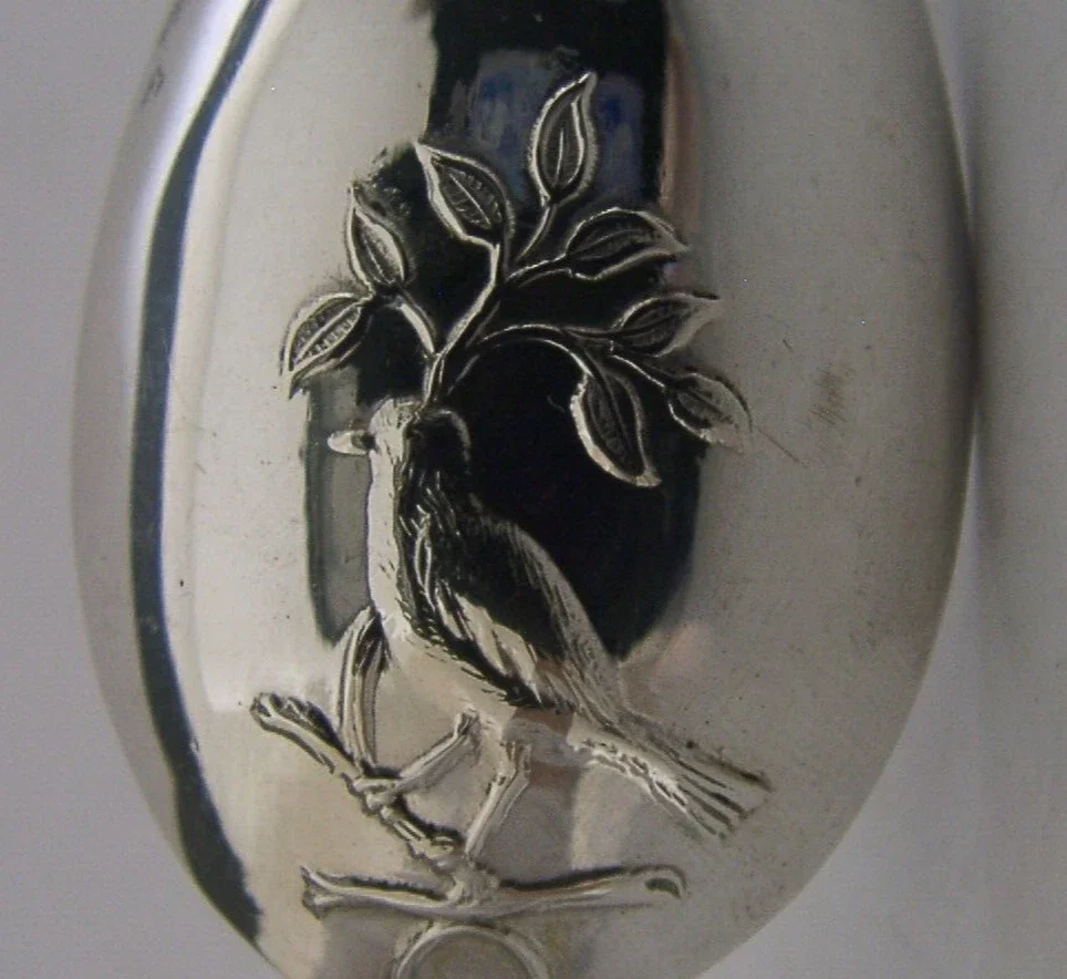 ENGLISH STERLING SILVER c1750 Copy DOVE on OLIVE BRANCH SPOON 1971