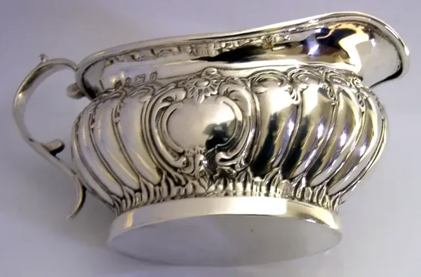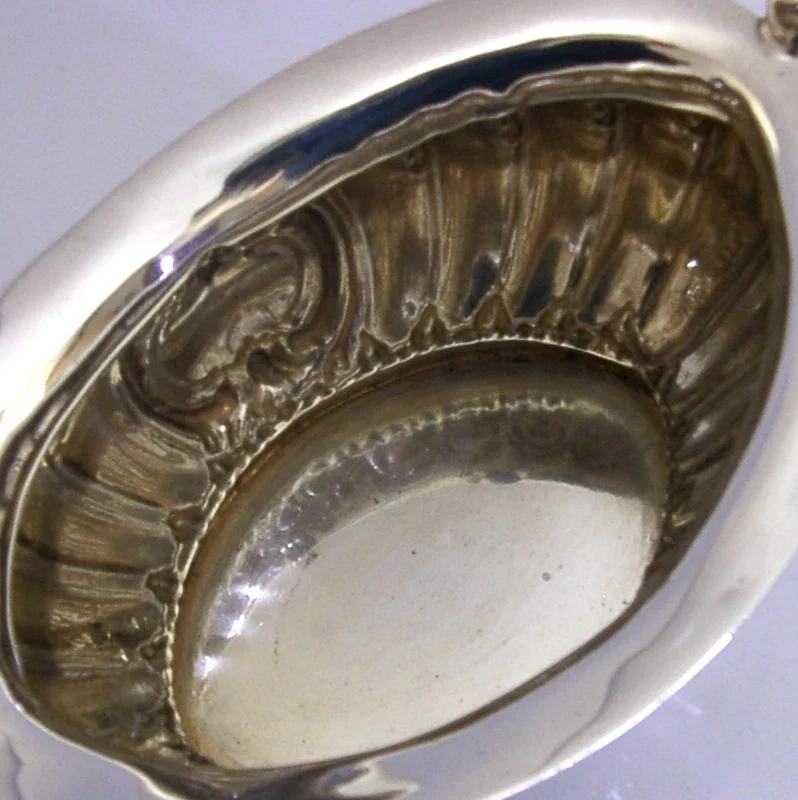 A beautiful high quality English solid sterling silver jug. It is hallmarked for Birmingham 1903 with the makers marks being WBLd. It has been superbly made having a very nice shape and light gilding inside. It is in superb condition being free from dings splits holes and repairs, the inside is clean. It measures approx. 5.5 inches (14cms) long including the handle by 3 inches (7.7cms) wide by the same tall to the top of the handle and weighs 117 grams. A very well made beautiful piece.