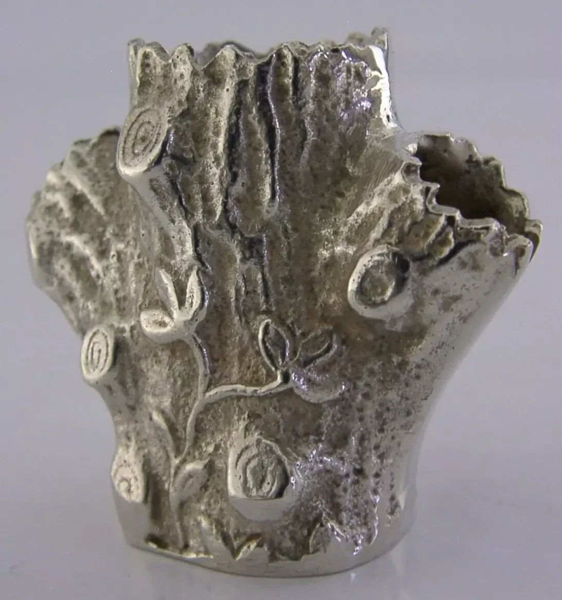 HEAVY RARE CAST SOLID SILVER TREE STUMP PEN HOLDER ? c1950 DESK ITEM 42g NOVELTY
