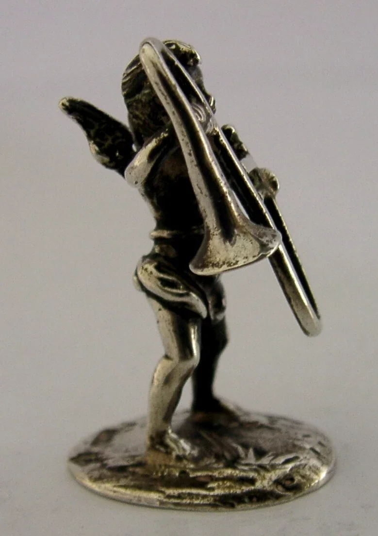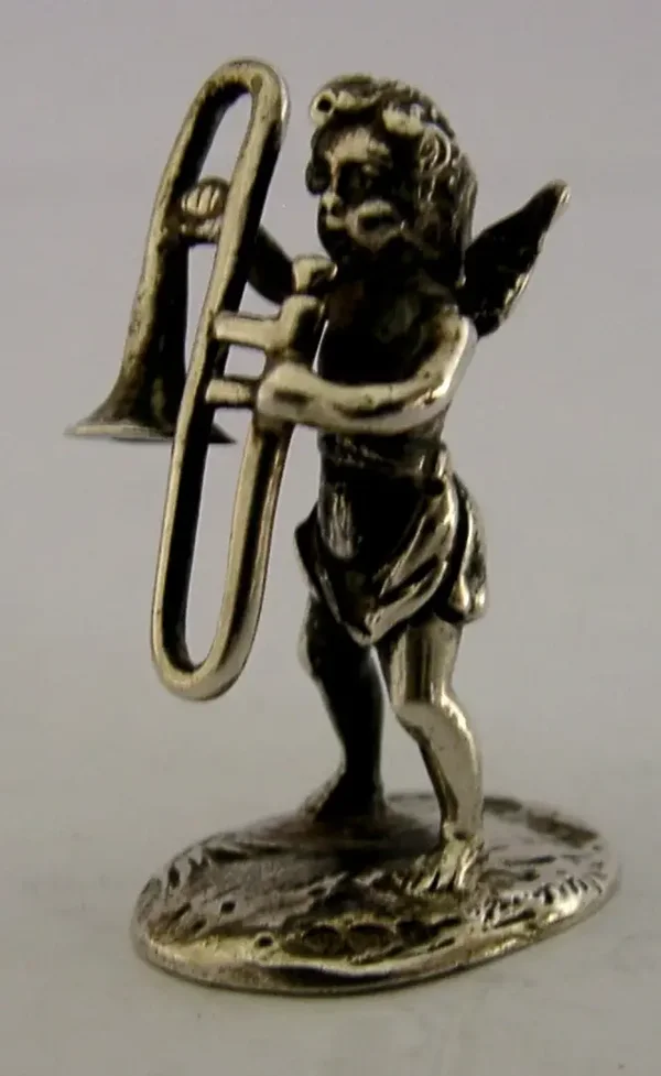 ANTIQUE 1912 STERLING SILVER MINIATURE CHERUB TROMBONE PLAYER UNUSUAL MINIATURE