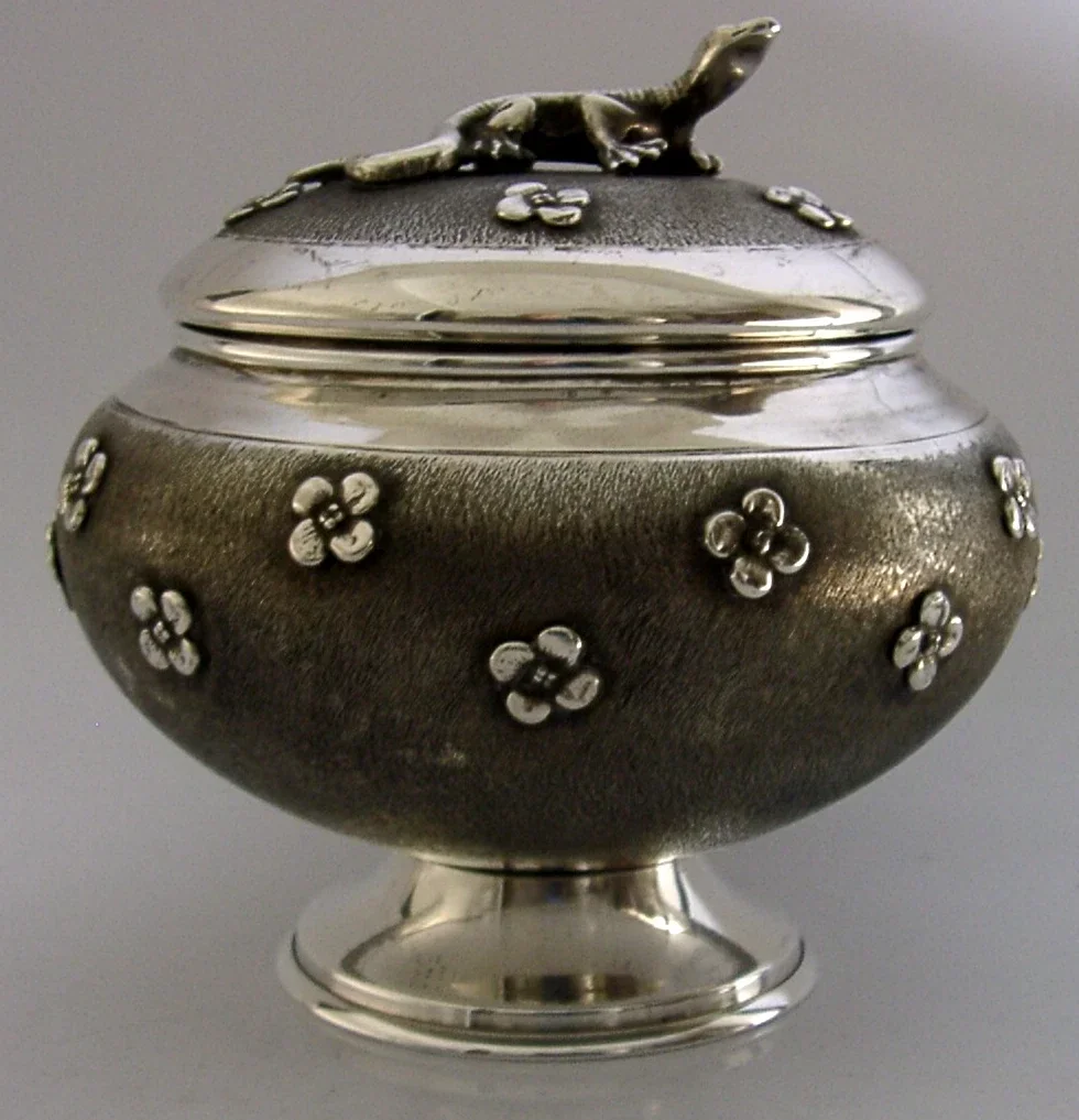 STUNNING QUALITY SOLID SILVER ITALIAN LIZARD BOX CADDY LIDDED BOWL c1950 185g