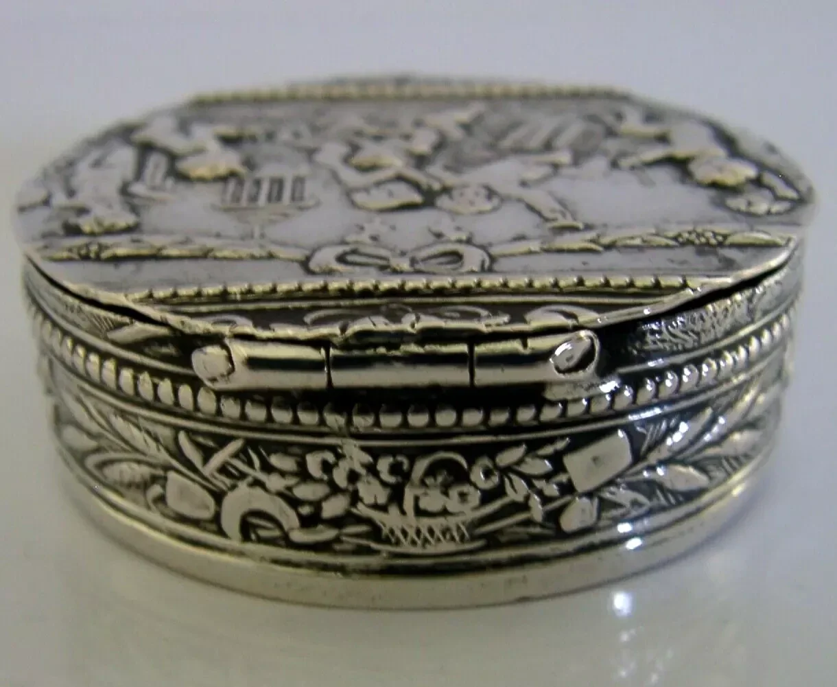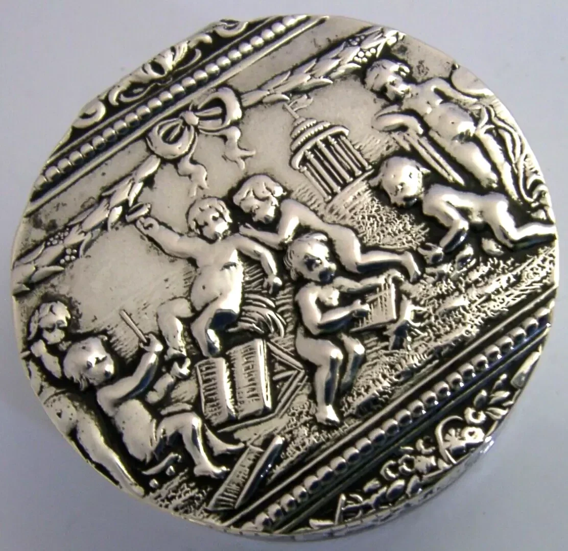 GERMAN HANAU SOLID SILVER CHERUB BOX c1900 ANTIQUE