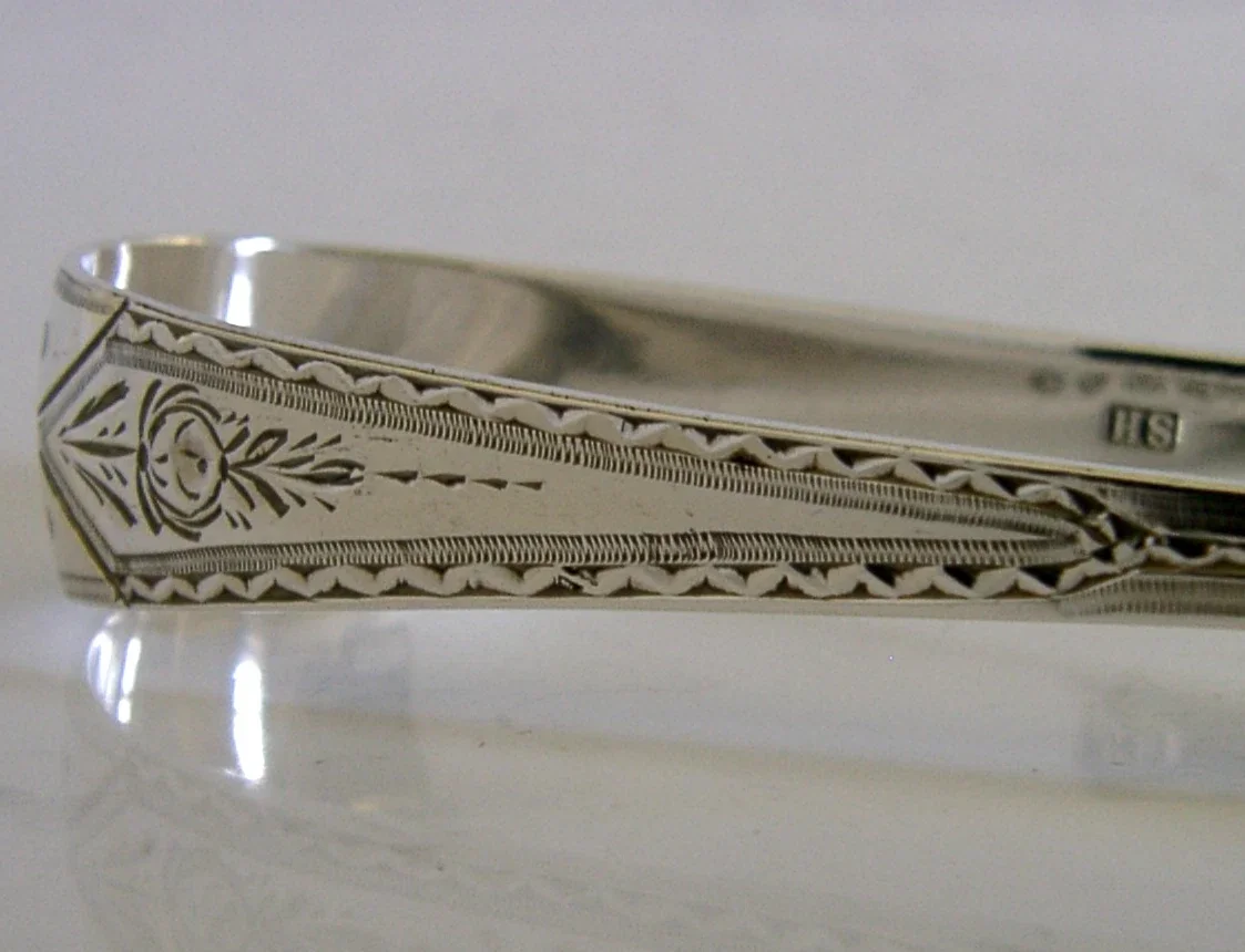Pretty antique solid sterling silver sugar tongs / nips. They are hallmarked for London 1888 with the makers marks being SH. They have been beautifully engraved with roses and the initials FJJ. They are in superb condition being free from dings splits distortions and repairs. They measure approx. 4.75 inches (11.8cm) long weigh 33 grams. Nicely made high quality examples.