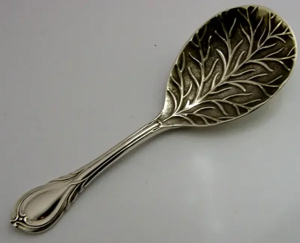 RARE ENGLISH VICTORIAN SOLID STERLING SILVER LEAF CADDY SPOON 1896 ANTIQUE