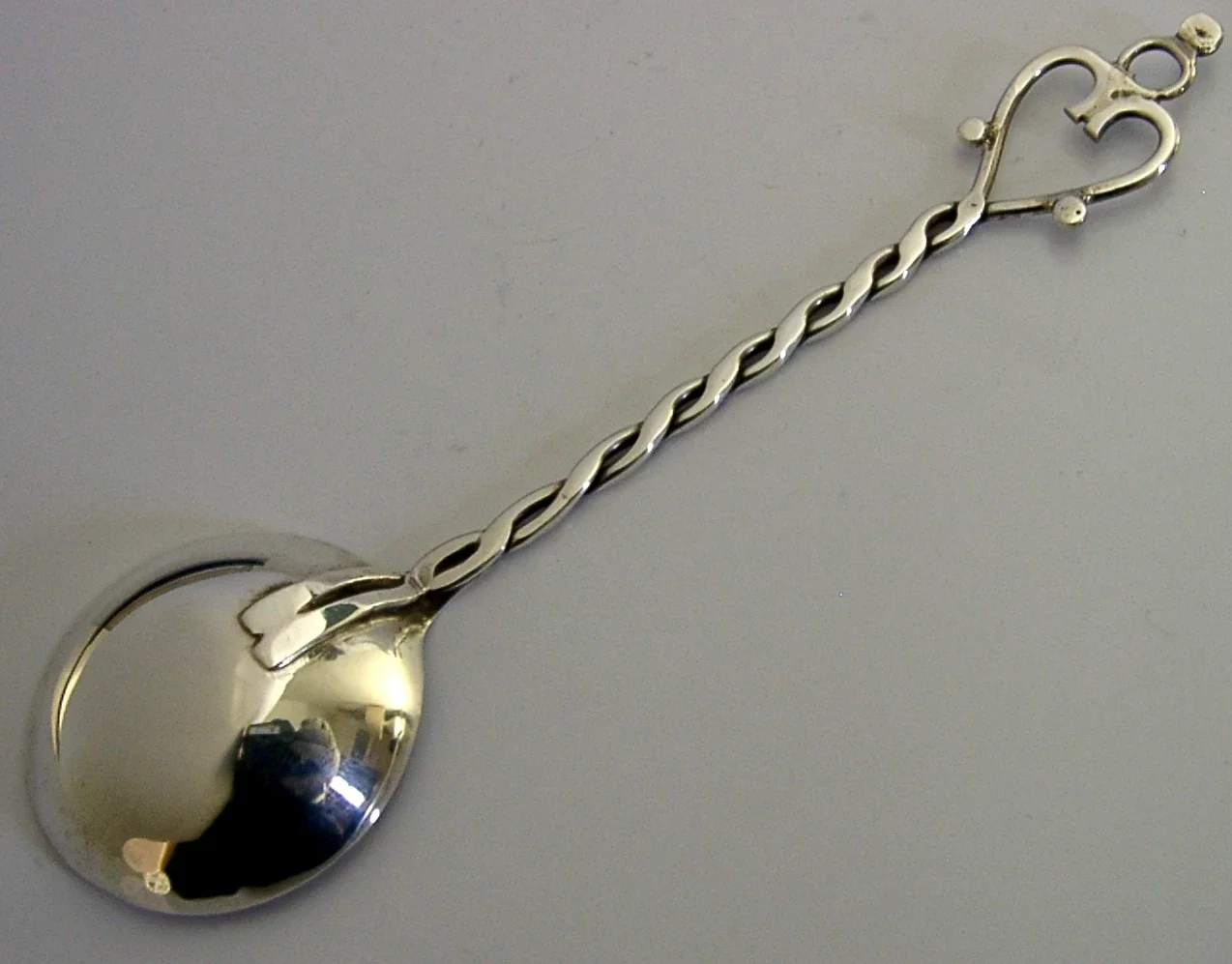 A beautiful hand made Scottish solid sterling silver caddy spoon. It is hallmarked for Edinburgh 1985 with the maker being Isle of Mull Silver Co (Philip D A Campbell). It has been superbly designed and is in super condition being free from dings splits distortions and repairs. It measures approx. 4.5 inches (11.4cm) long by 1.25 inches (3.2cm) wide and weighs 8 grams excluding the box. A very nicely designed piece.