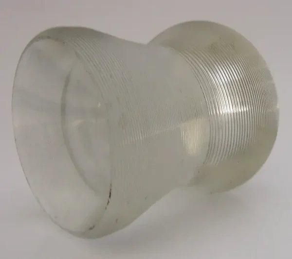 A rare good sized English Victorian antique solid sterling silver rimmed glass match striker. It is hallmarked for Birmingham 1901 with the maker being C C May & Sons (Charles May). It has been superbly made being a more unusual champagne cork shape and is in superb condition being free from splits chips cracks and repairs, a ding to the silver see photo. It measures almost 2.5 inches (6.2cm) wide by 3 inches (7.6cm) tall and weighs 340 grams. A very well made example.