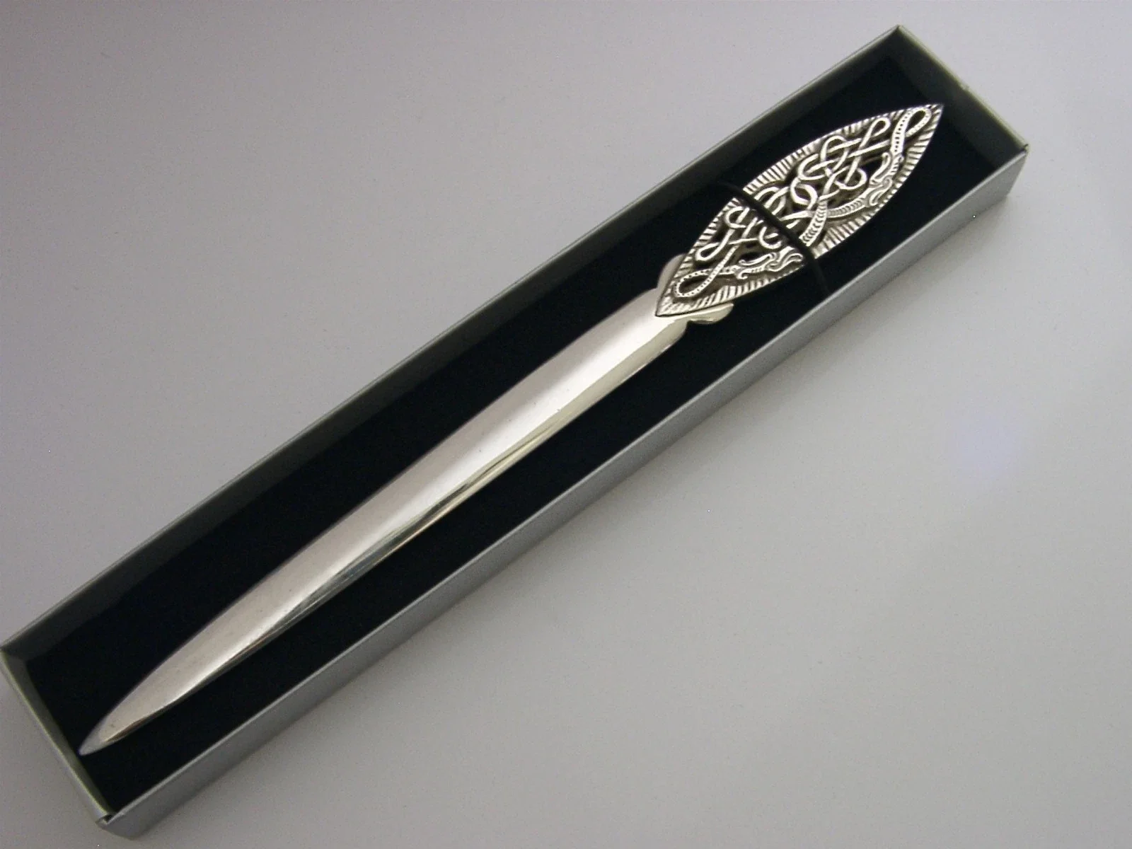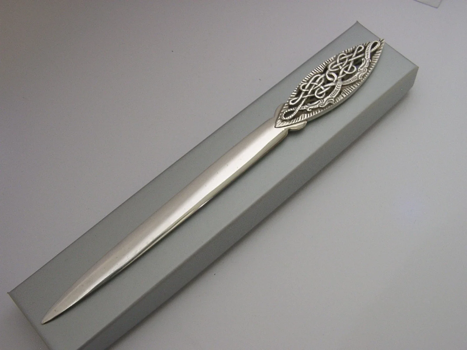 BEAUTIFUL IRISH STERLING SILVER CELTIC LETTER ENVELOPE OPENER 1978 DESK ITEM 50g