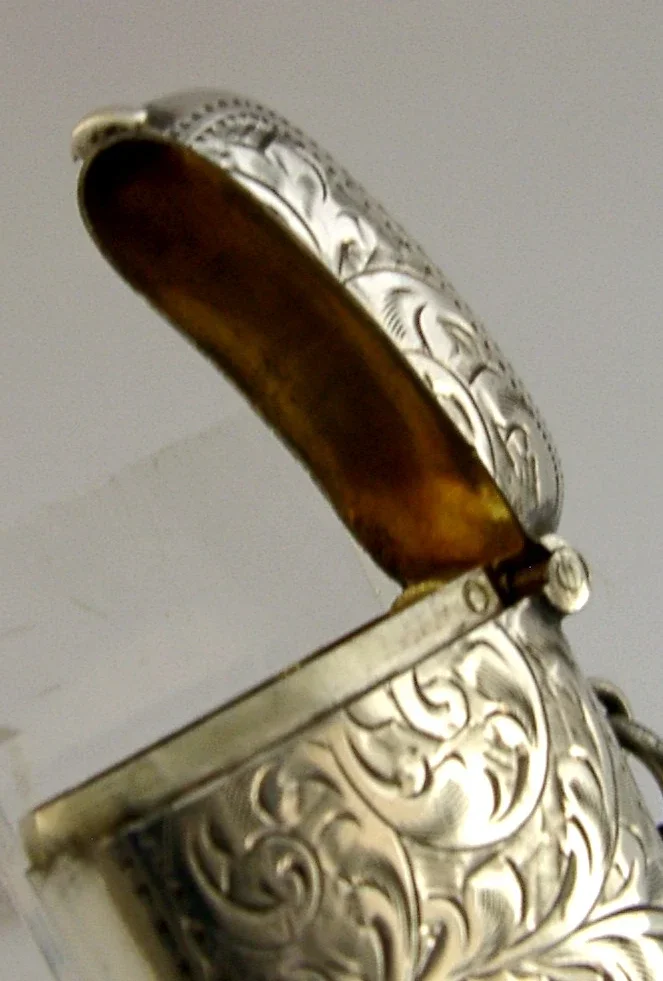 LEFT HANDED ENGLISH STERLING SILVER VESTA MATCH CASE 1911 ANTIQUE