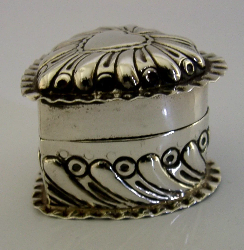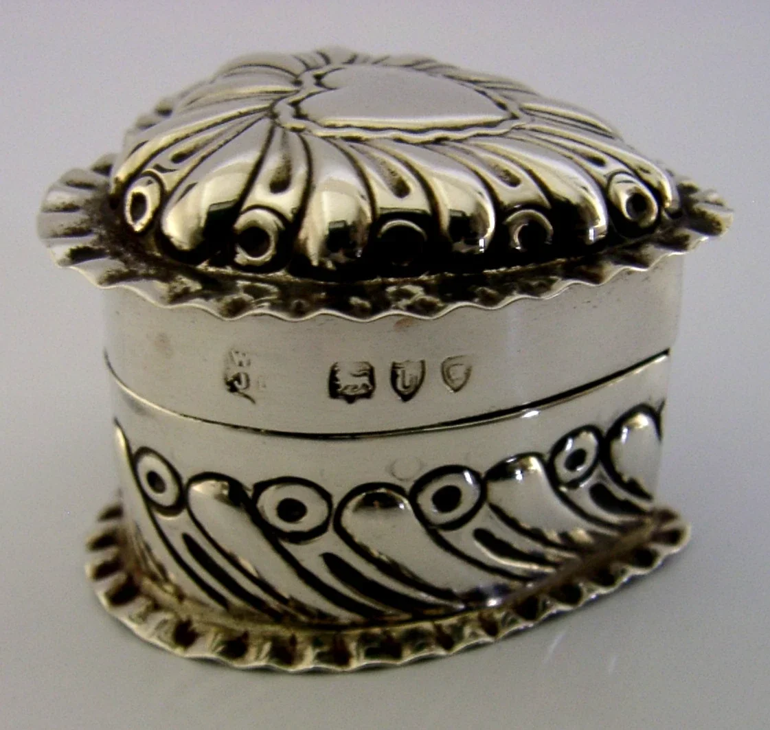 PRETTY VICTORIAN ENGLISH STERLING SILVER LOVE HEART BOX 1895 ANTIQUE 28g