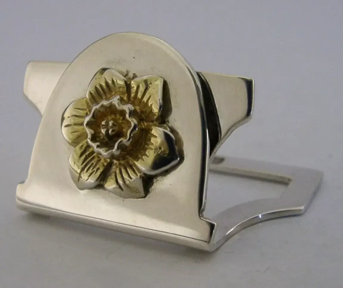 SOLID STERLING SILVER GILT DAFFODIL FLOWER MENU HOLDER 1993 ENGLISH