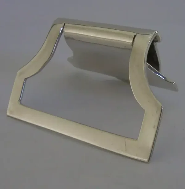 A superb English solid sterling silver place card or menu holder. It is hallmarked London with the marker’s mark being JA. It has been superbly designed being decorated with a gilded daffodil. It is in superb condition being free from dings splits and repairs. It measures approx. 1.75 inches (4.5cm) across the base by 1 inch (2.6cm) tall and weighs 22 grams. A very well made pretty piece.