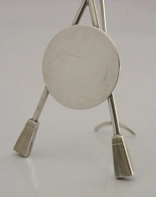 A very interesting Scottish solid sterling silver sporting curing trophy stand? It is hallmarked for Edinburgh 1984 with the maker being Scotia Manufacturing Jewellers Limited. It has been superbly designed and is in super condition being free from dings splits distortions and repairs. It measures almost 3 inches (7.4cm) tall by 1.75 inches (4.2cm) wide and weighs 14 grams. A very unusually designed piece.