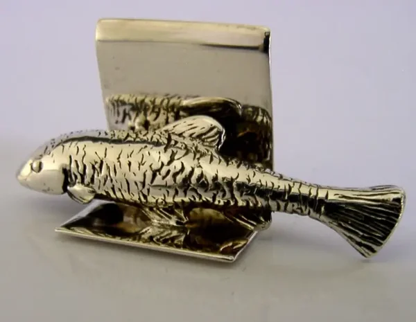 THISTLE & BEE STERLING SILVER FISH MENU HOLDER 1999 HUNTING FISHING ANIMAL