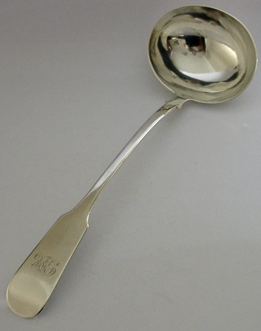 HUGE 220g SCOTTISH VICTORIAN SOLID STERLING SILVER SERVING LADLE 1846 ANTIQUE