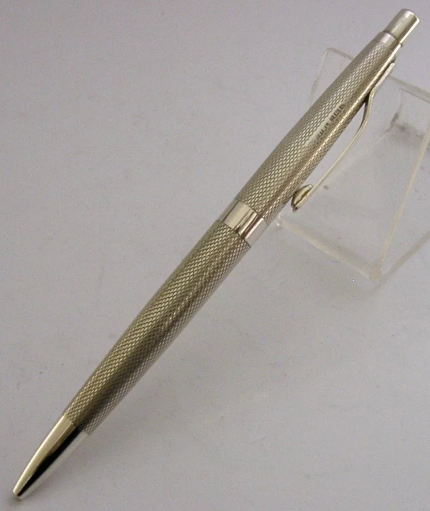 MINT WORKING ENGLISH STERLING SILVER ENGINE TURNED BALLPOINT PEN 1971 DESK ITEM