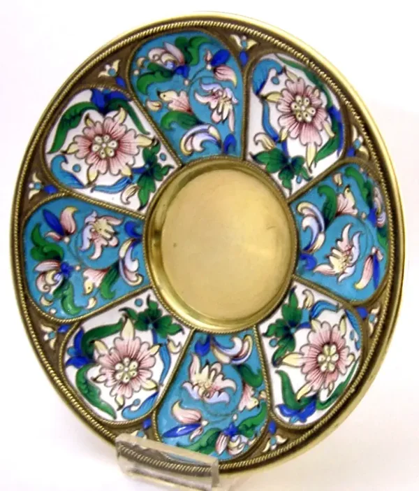 SUPERB RUSSIAN 84 SOLID SILVER GILT ENAMEL DISH or SAUCER 115g