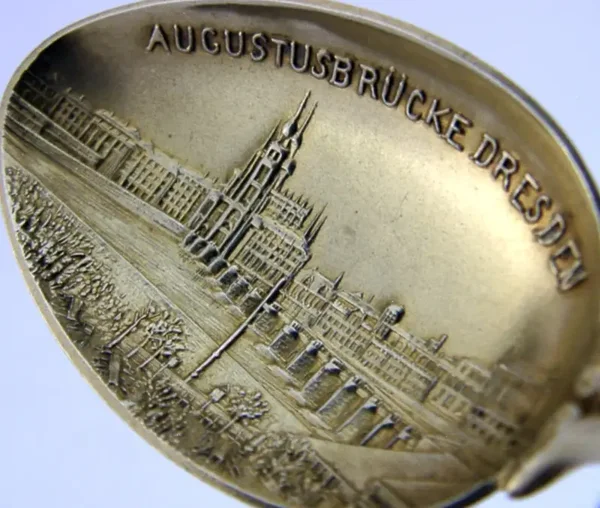 PRETTY 800 DRESDEN SOLID SILVER ENAMEL GERMANY SOUVENIR SPOON ANTIQUE c1910