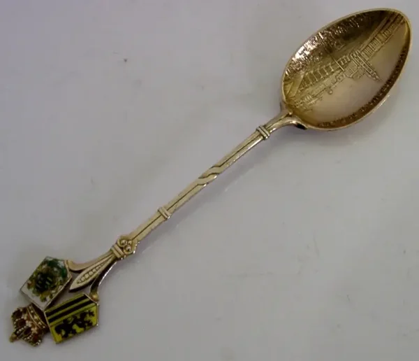 A pretty German 800 solid silver and enamel spoon. It is hallmarked with the 800 silver standard mark and dates to c1910. It has been superbly made being a souvenir of Dresden. It is in superb condition being free from dings splits chips cracks distortions and repairs. It measures approx. 4.75 inches (12.3cm) long and weighs 12 grams. A pretty piece.