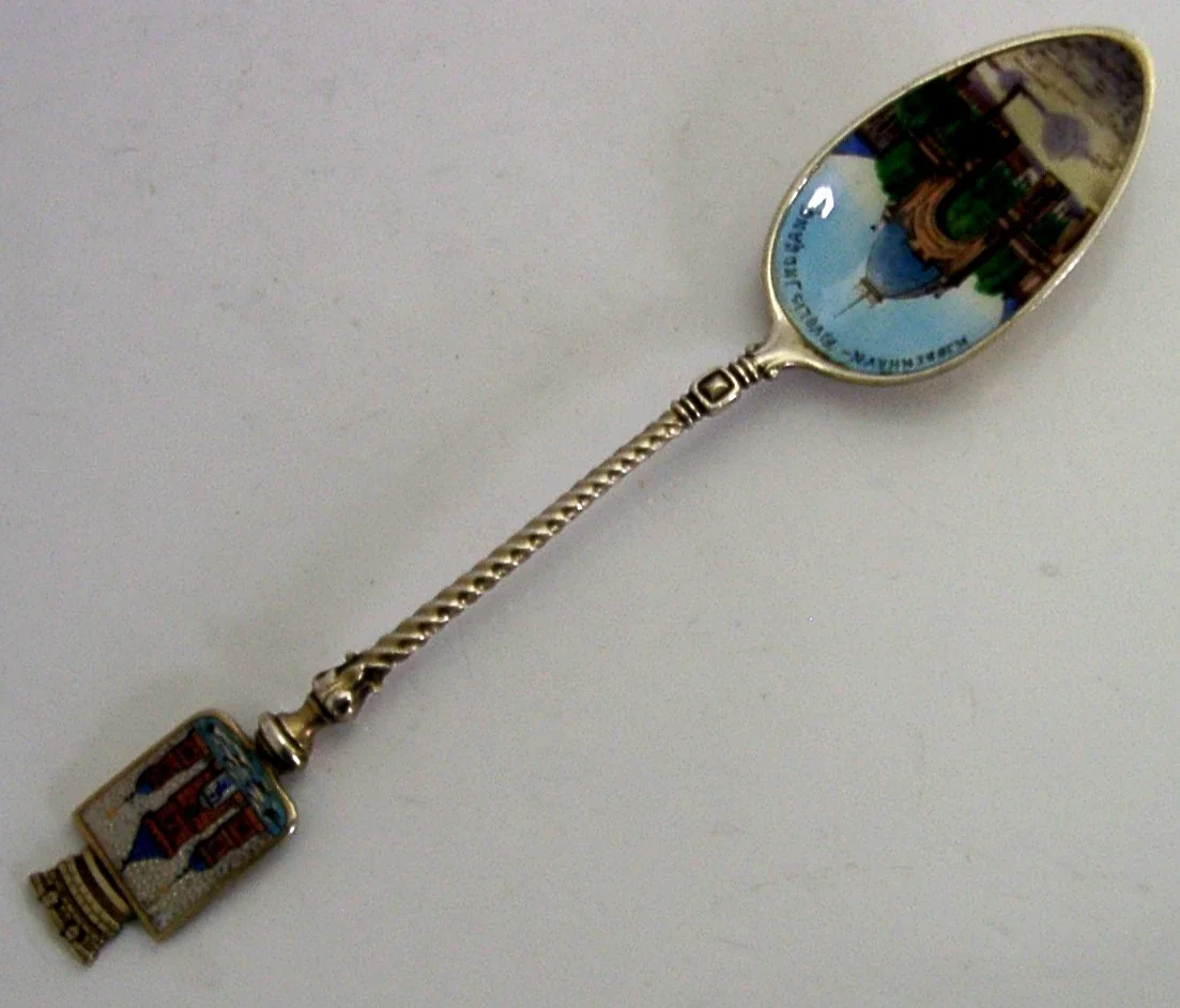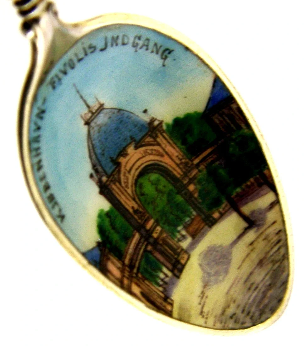 DANISH 830s SOLID SILVER ENAMEL SOUVENIR SPOON c1910 ANTIQUE
