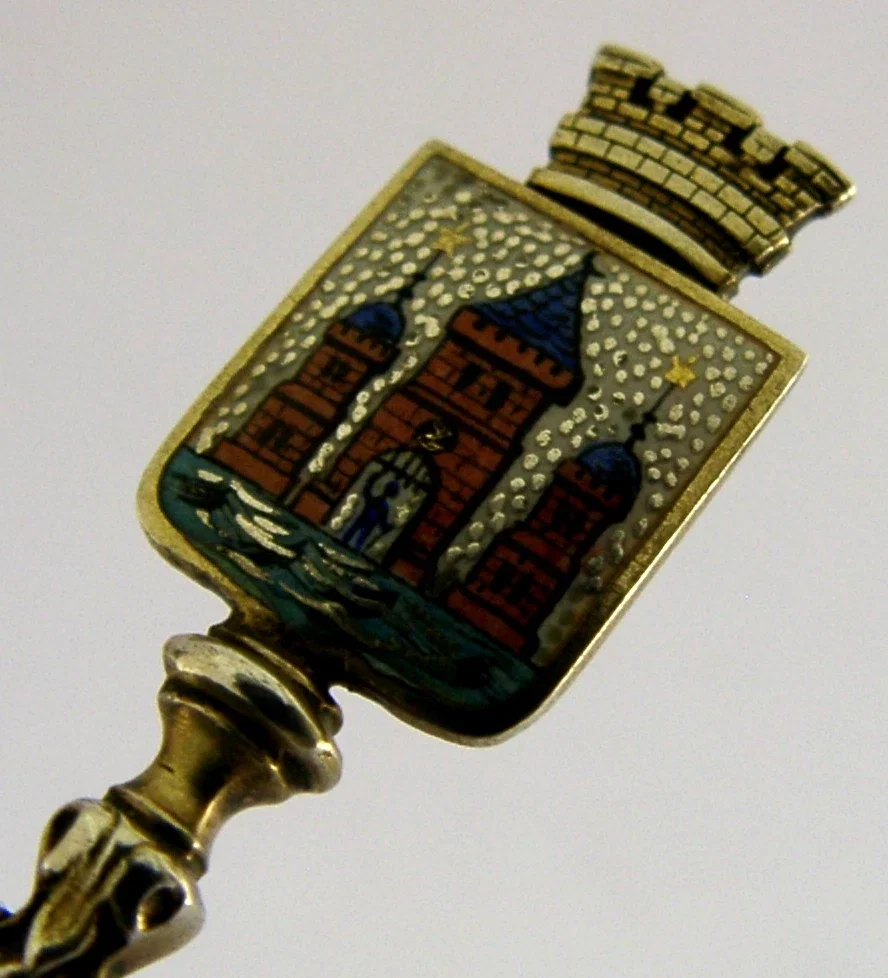 A pretty Danish solid sterling silver gilt and enamel souvenir spoon. It is hallmarked with the 830 silver standard mark and a makers mark. I would date it to c1900-1920. It has been superbly made being beautifully enamelled and is in superb condition being free from dings splits chips cracks distortions and repairs. It measures approx. 4.5 inches (11cm) long and weighs 12 grams. A super quality piece.