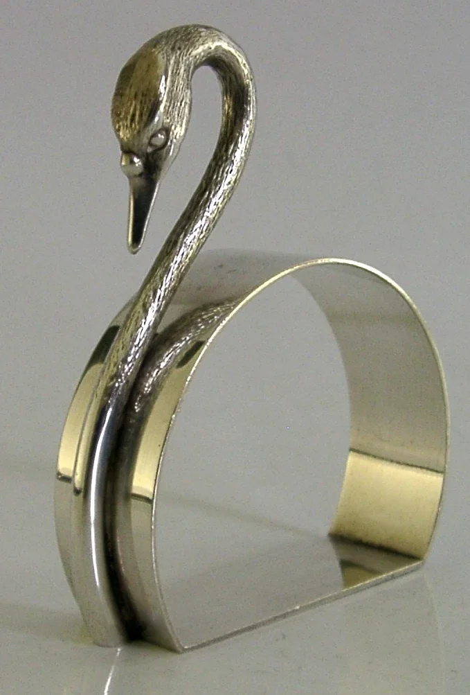 STERLING SILVER SWAN NAPKIN RING PETER NICHOLAS DESIGNER ENGLISH 1990 ANIMAL 33g