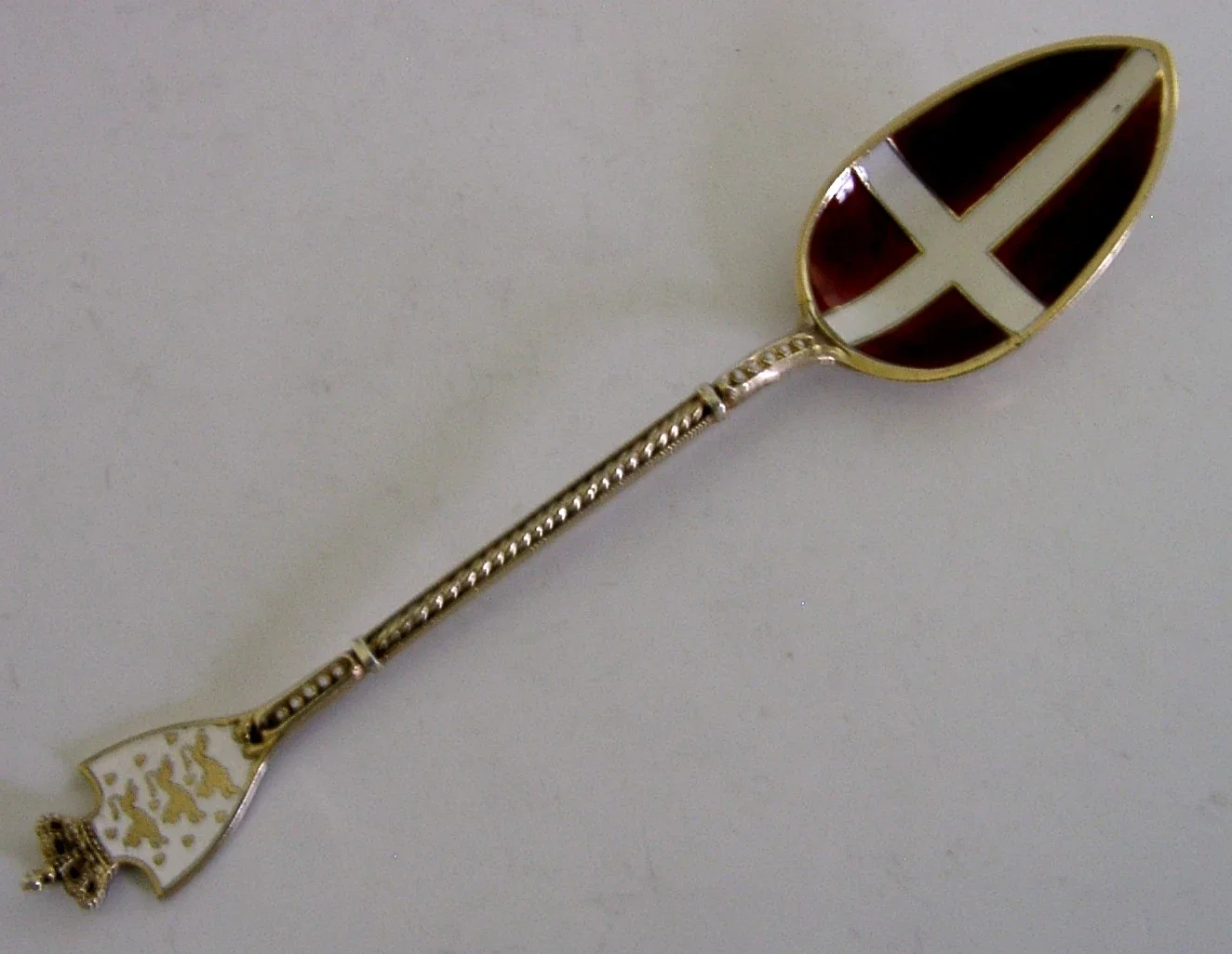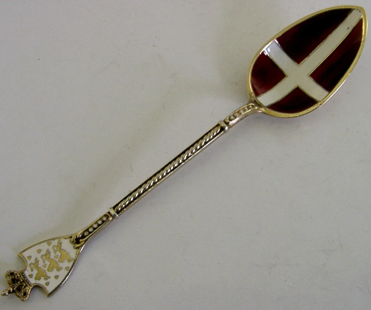 DANISH STERLING SILVER ENAMEL FLAG SOUVENIR SPOON MARIUS HAMMER c1910 ANTIQUE