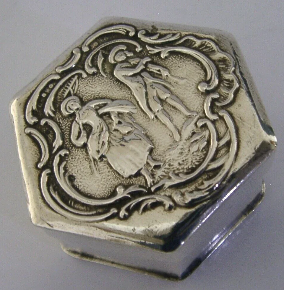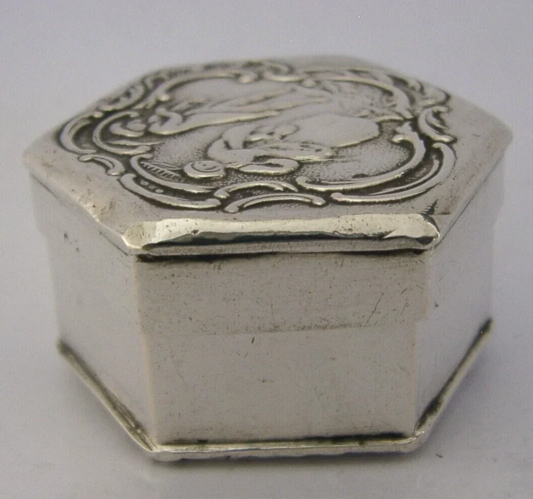 BEAUTIFUL GERMAN / FRENCH SOLID SILVER PILL TRINKET BOX c1900 ANTIQUE
