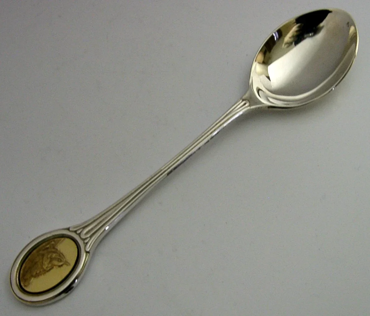 SOLID STERLING SILVER NUTHATCH SPOON LONDON 1975 BIRD 27g