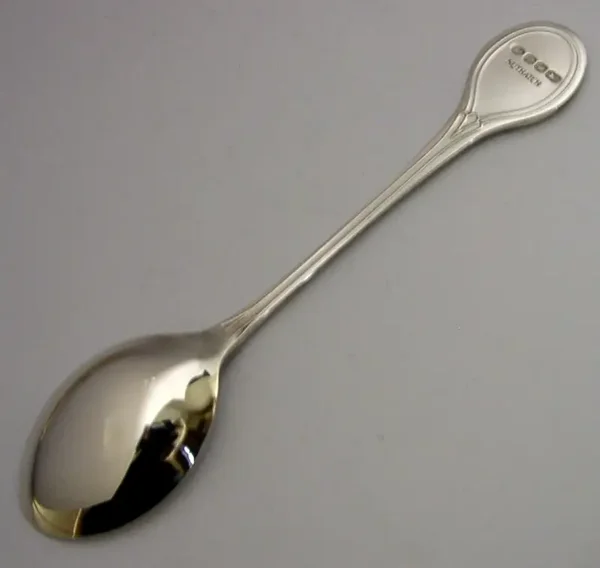A very nice quality English solid sterling silver bird spoon. It is hallmarked for London 1975 with the makers marks being that of John Pinches (Medallists) Ltd. It has been nicely design having a gilded image of a Nuthatch to its terminal. It is in super condition being free from dings splits distortions and repairs. It measures approx. 5.25 inches (13.6cm) long by almost 1.25 inches (2.9cm) wide and weighs 27 grams. A beautiful example.