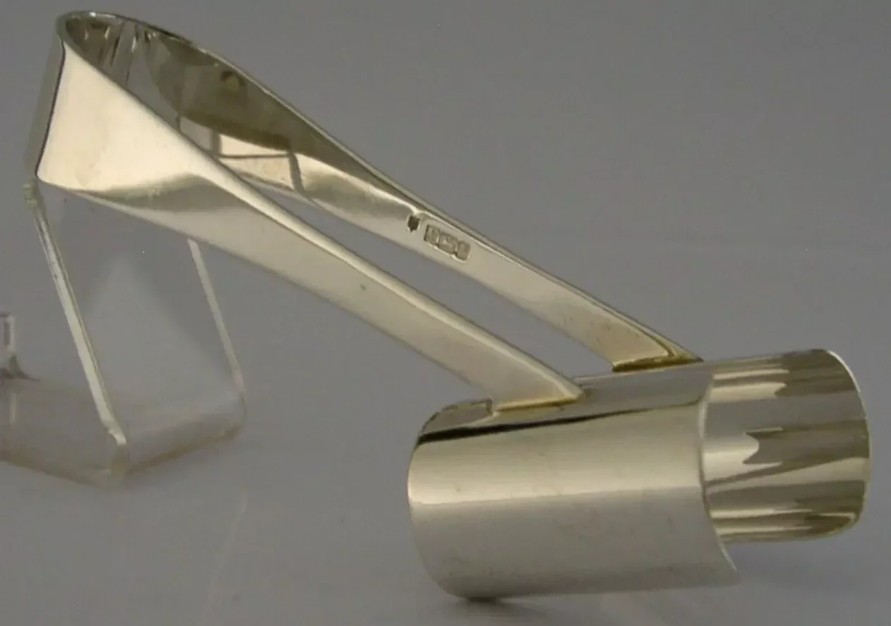 LARGE SOLID STERLING SILVER ASPARAGUS SERVING TONGS 1985 ANTIQUE 65g
