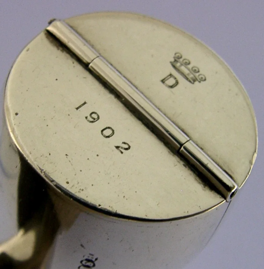 A rare Victorian antique solid sterling silver smoking pipe case. It is hallmarked for London 1900 with the makers mark being HSB. It has been superbly designed being hinged and internally gilded and most interestingly engraved with the coronet of a Baron and the date 1902. It is in super condition being free from dings and repairs, very faint push to the underside see final photo. It measures approx. 5 inches (12.7cm) long by 1.5 inches (4cm) by 1.25 inches and weighs 51 grams. A very unusual rare piece.