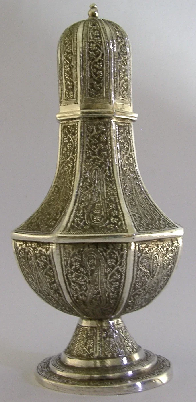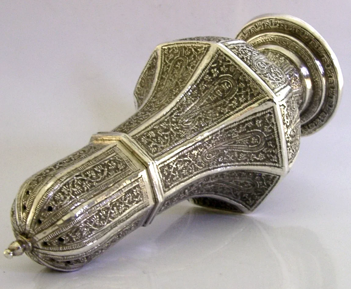 224g HAND MADE KASHMIR INDIAN SOLID SILVER SUGAR CASTER SHAKER c1900 ANTIQUE