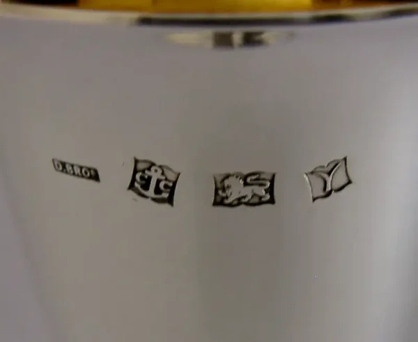 A very nicely made mint English solid sterling silver goblet. It is hallmarked for Birmingham 1973 with the maker being DBROS. It has been superbly designed having feature hallmarks and internal gilding. It is in superb condition being free from dings splits distortions and repairs. It measures almost 5.5 inches (13.9cm) tall by 2.75 inches (6.8cm) across the rim and weighs 148 grams. A very good quality piece.