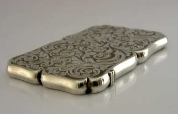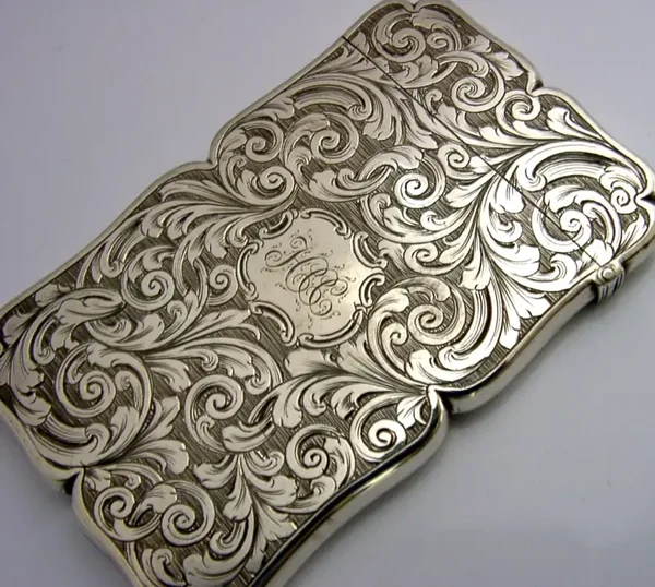STUNNING EDWARD SMITH STERLING SILVER CARD CASE 1855 LEFT HANDED ANTIQUE MINT