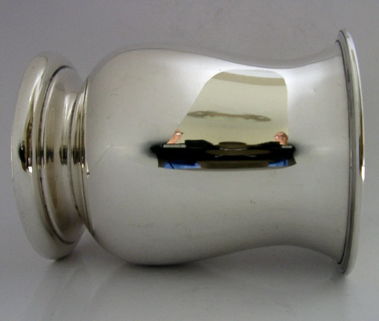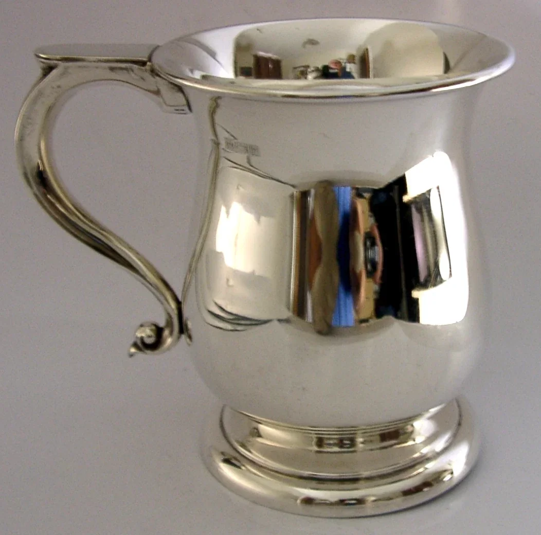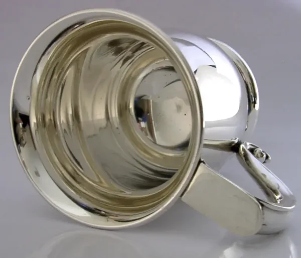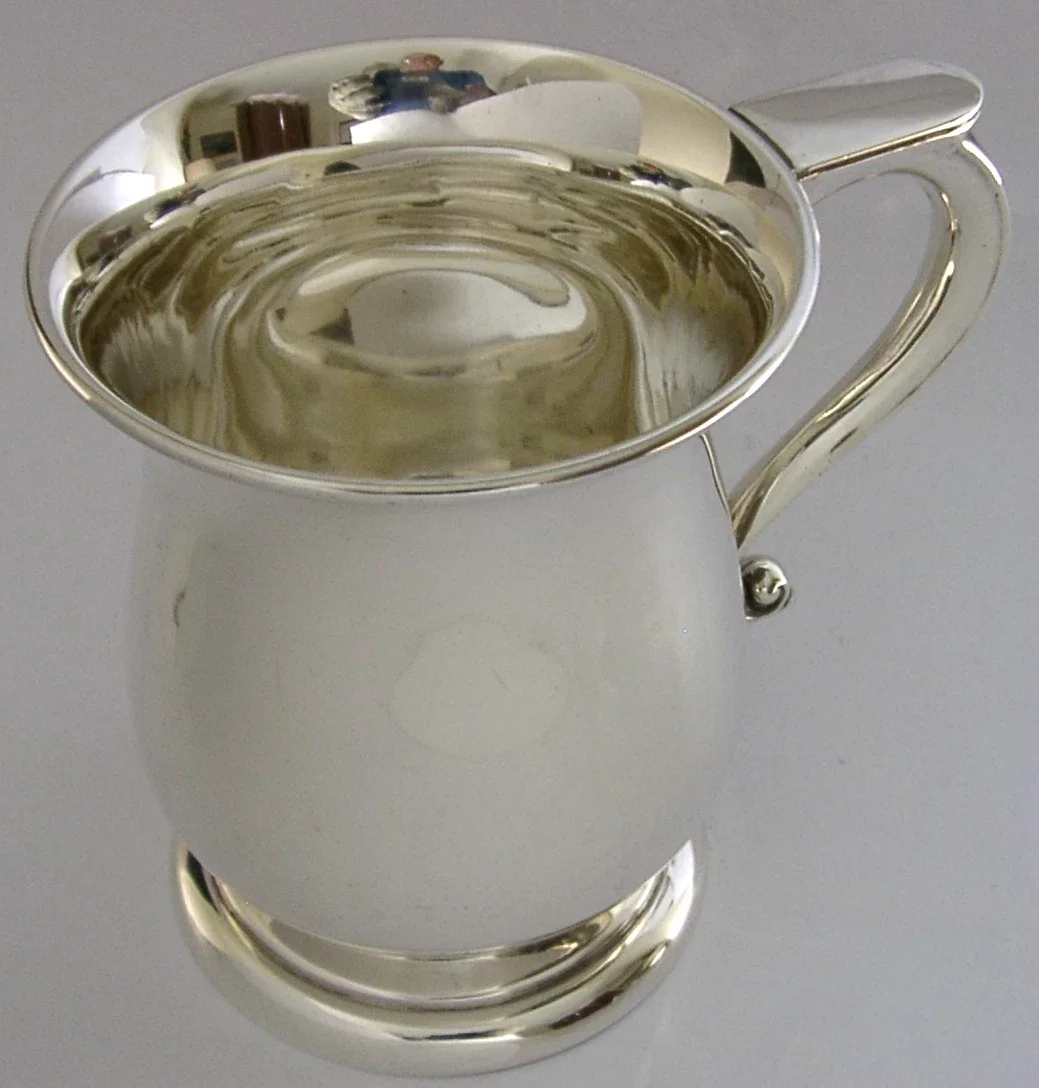 A quality English solid sterling silver pint tankard. It is hallmarked for Birmingham 1973 with the maker being JTC. It has been superbly made and is in superb condition being free from dings splits holes distortions and repairs, just a tiny rim mark see final photo. It measures approx. 5 inches (12.3cm) tall by 5.5 inches (14cm) across including the handle and 3.75 inches (9.8cm) excluding it and weighs 275 grams. A top quality piece.