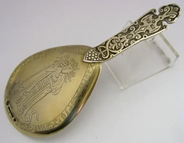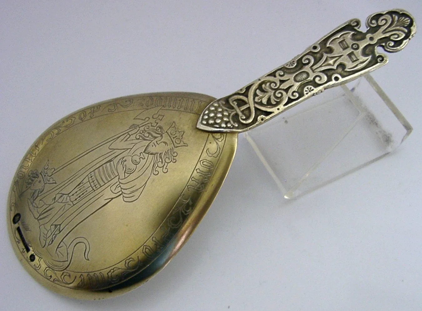 RARE DANISH SOLID SILVER GILT BAPTISM CHRISTENING SPOON 1897 ANTIQUE 57g