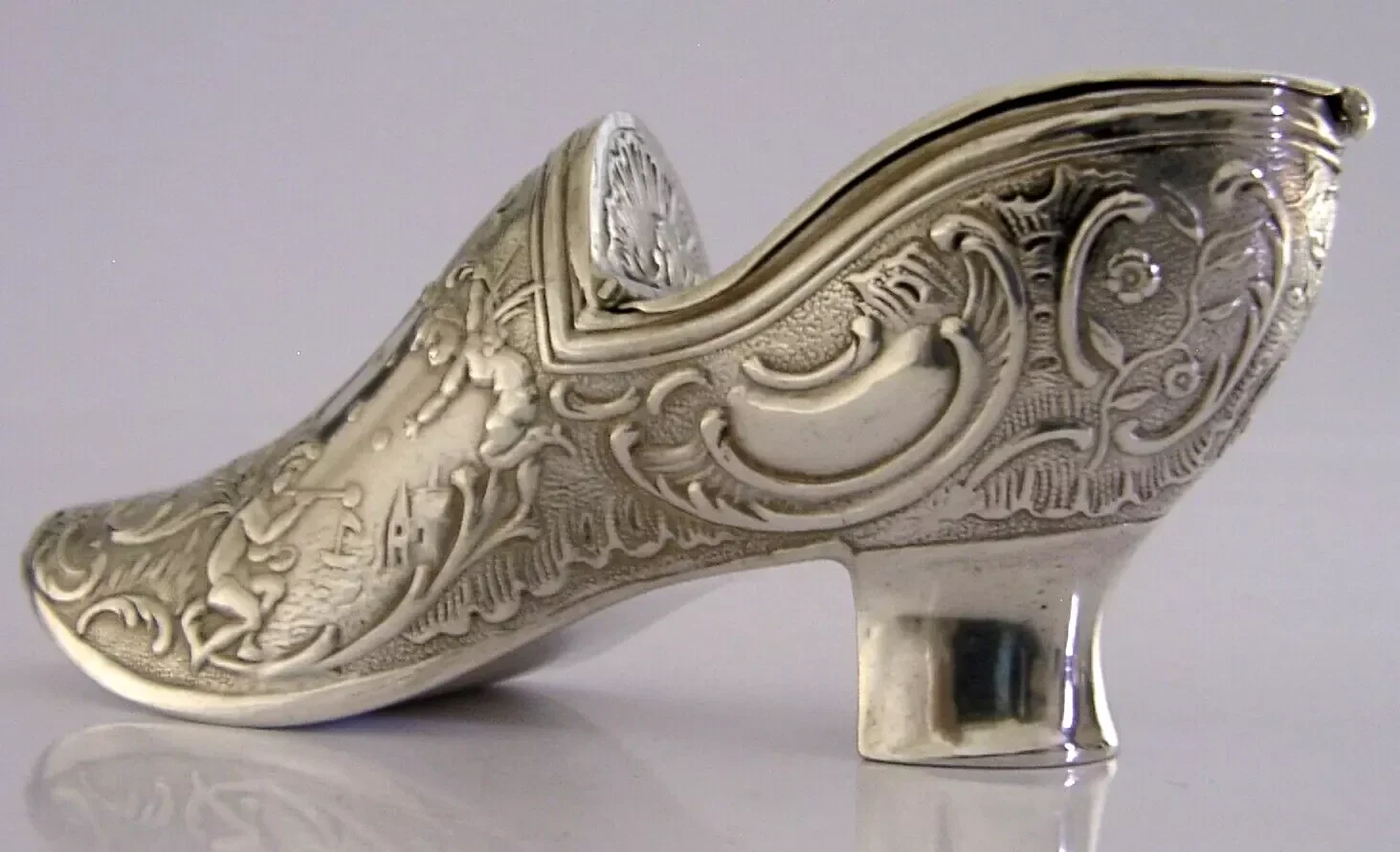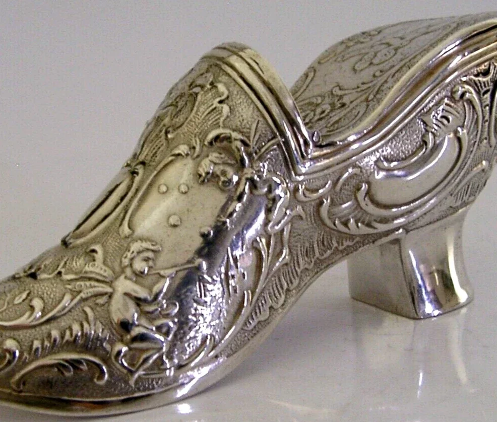 GOOD SIZE 4 inch RARE GERMAN HANAU SOLID SILVER SHOE BOX c1900 ANTIQUE 60g