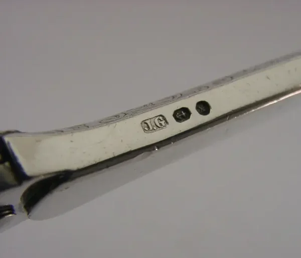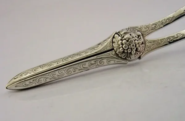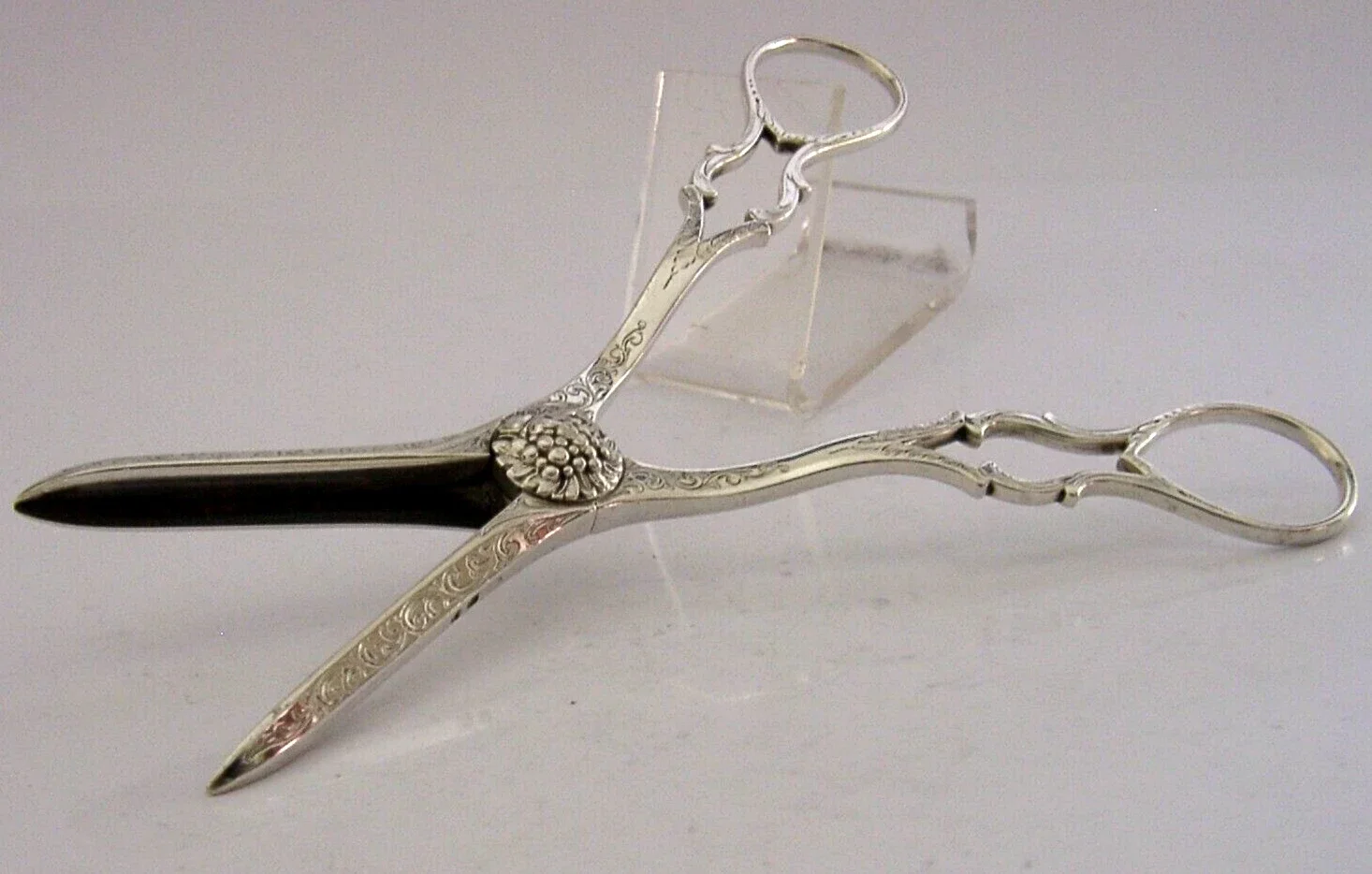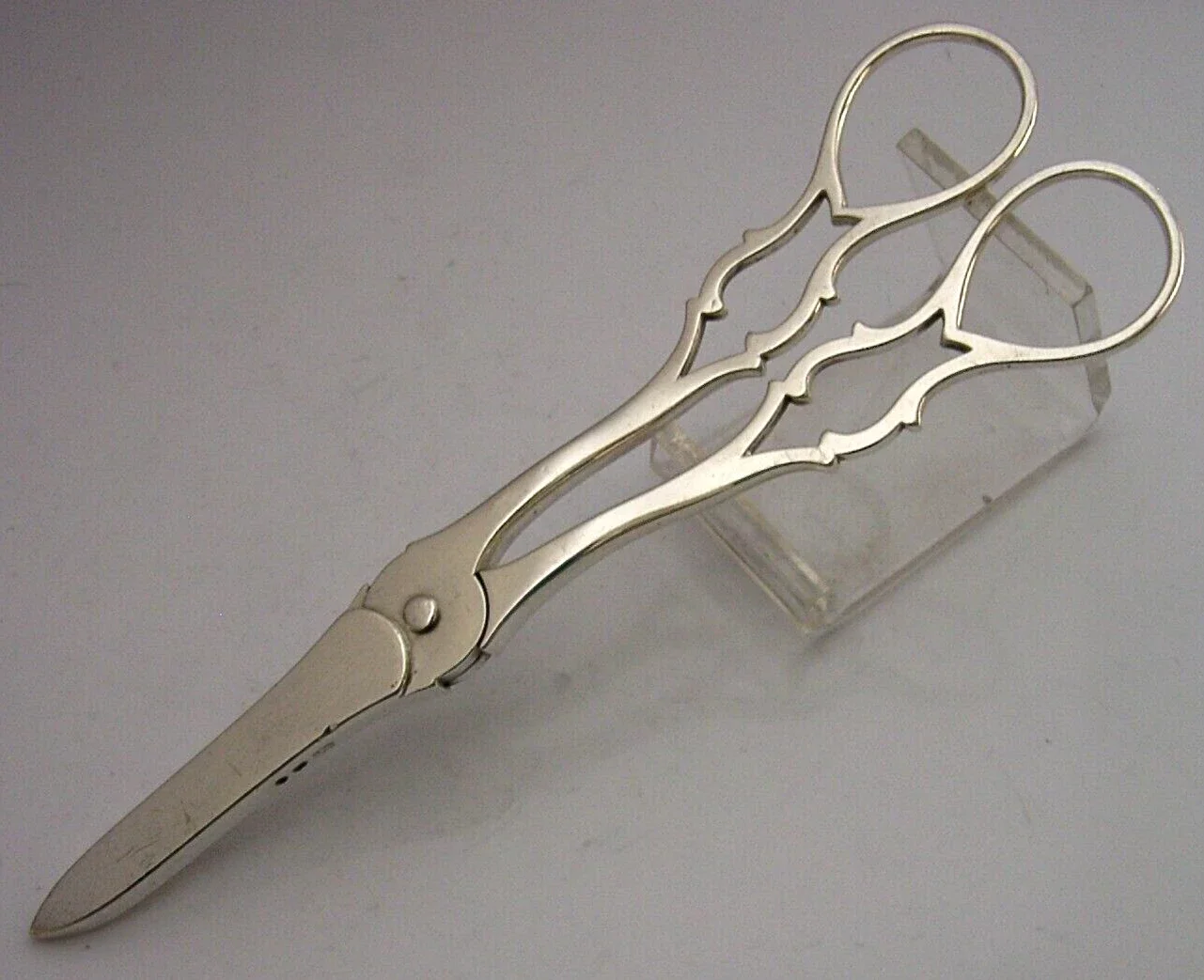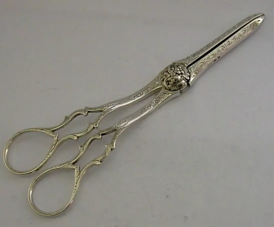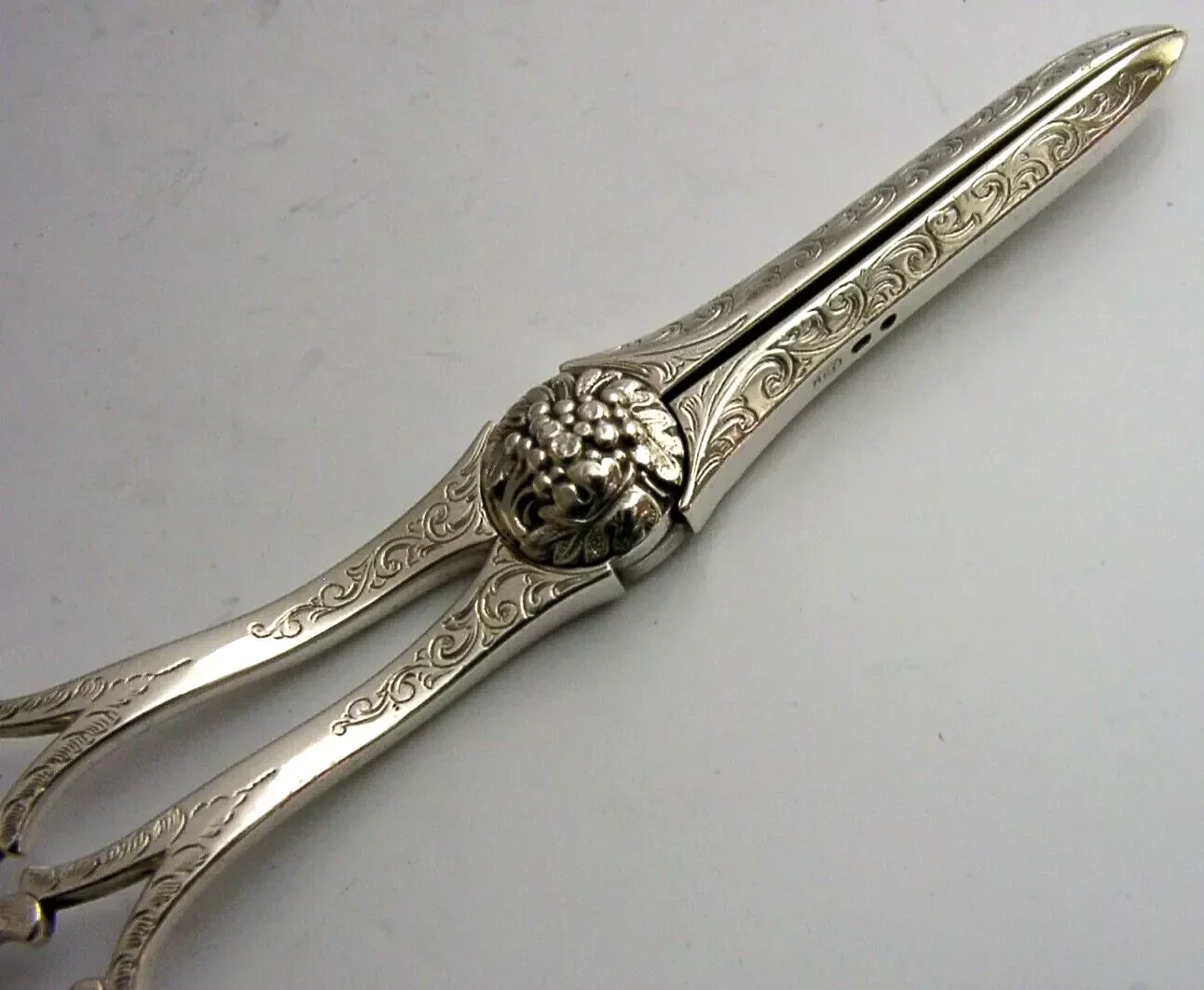 VICTORIAN HIGH QUALITY ENGLISH SOLID STERLING SILVER GRAPE SHEARS 1872 BARWARE