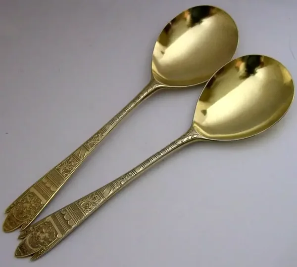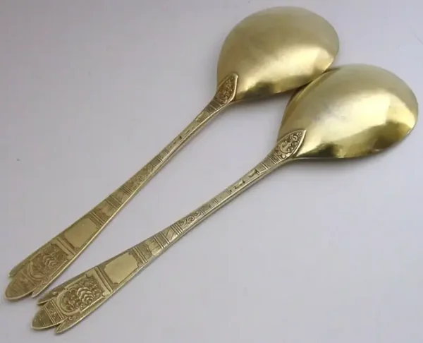 UNUSUAL GEORGIAN ENGLISH STERLING SILVER GILT SERVING SPOONS c1760s ANTIQUE 98g