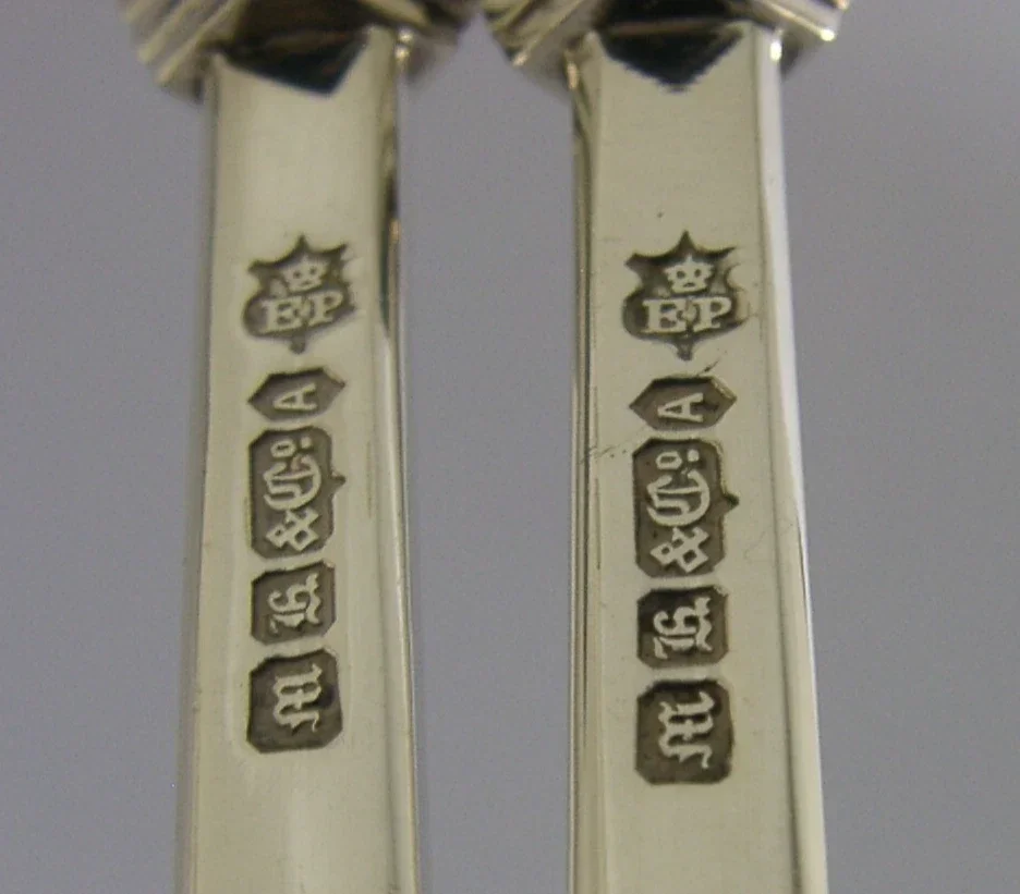 A superb set of English Victorian antique silver plated serving spoons. They are marked with the makers mark of MH&Co I would date them to c1880. They have been beautifully designed and are in superb condition being free from dings splits and repairs. They measures 8.25 inches (21cm) long by almost 3 inches (7.2cm) wide and have a combined weight of 155 grams. A very nice quality set.